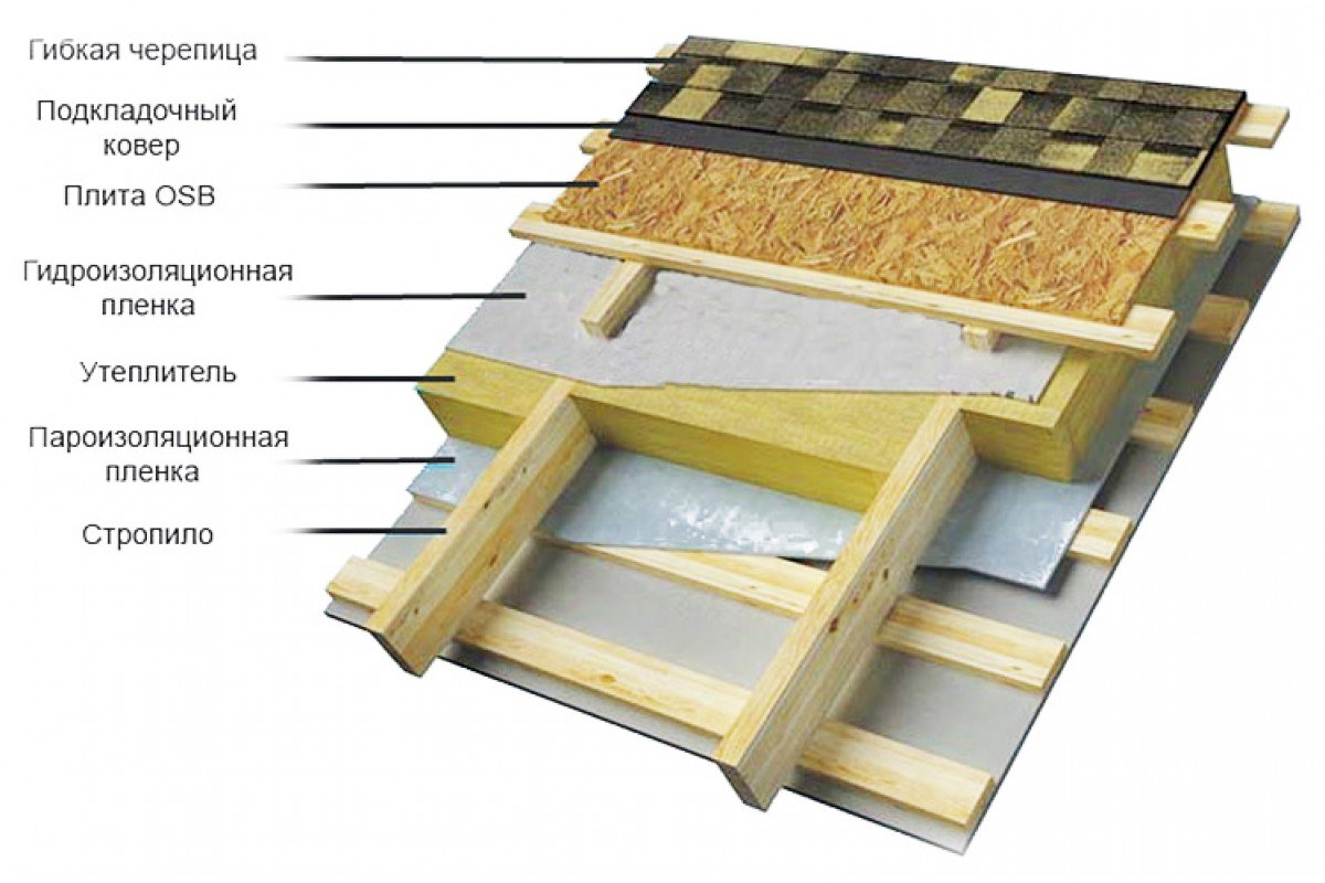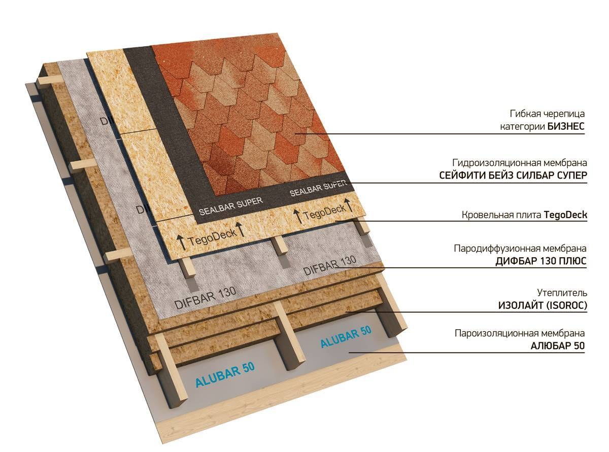 Кровельный пирог гибкая черепица ТЕХНОНИКОЛЬ