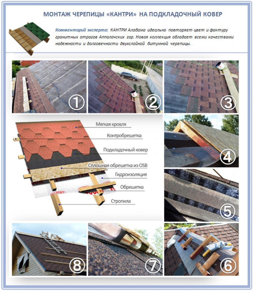 Схема монтажа мягкой кровли ТЕХНОНИКОЛЬ