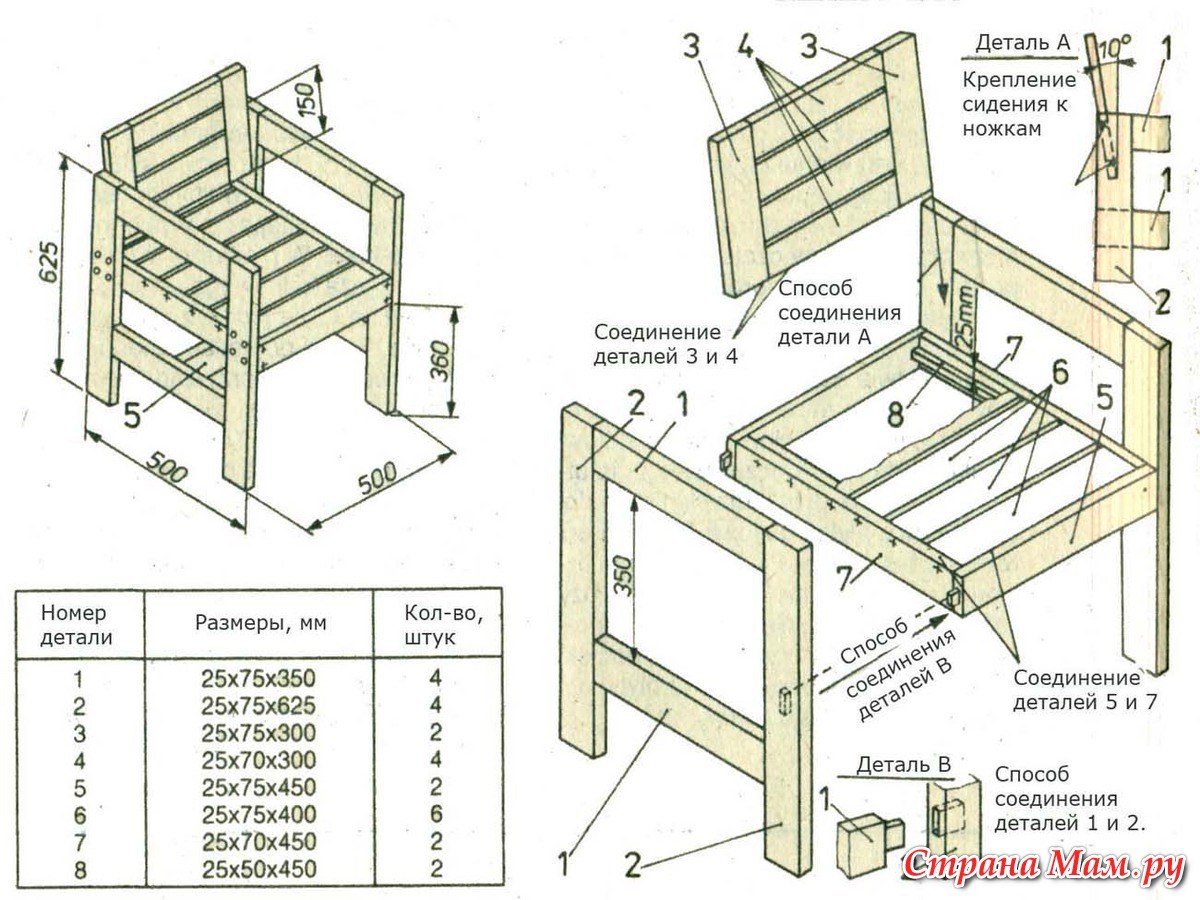 Кресло из дерева своими руками чертеж с размерами чертежи