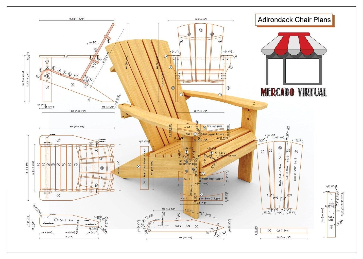 Садовое кресло Адирондак чертежи с размерами в сантиметрах
