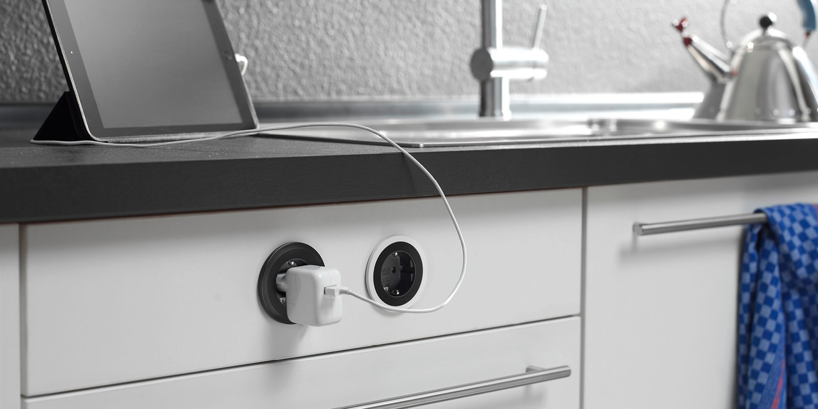 Розетки Schneider влагозащищенные встроенные в столешницу