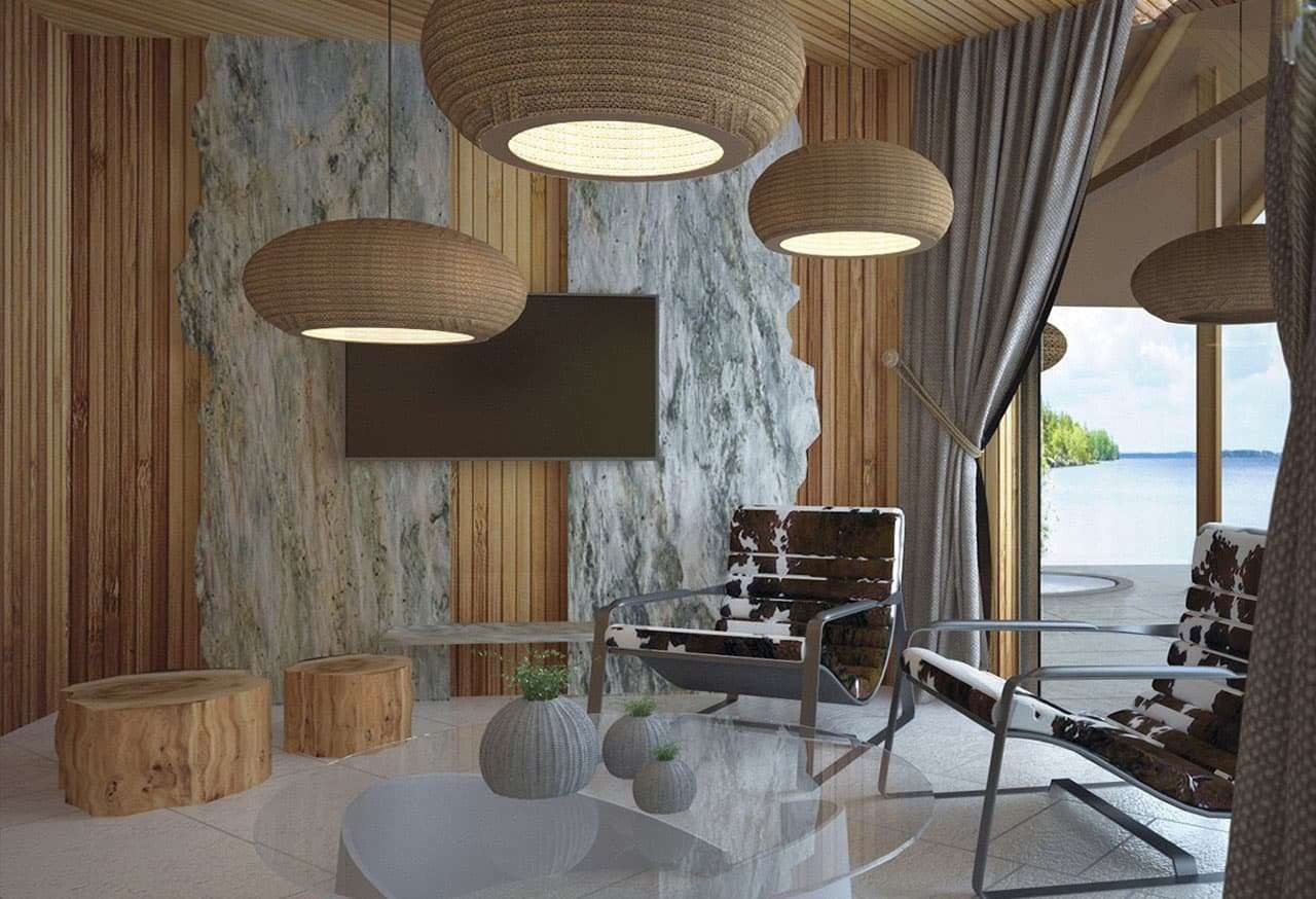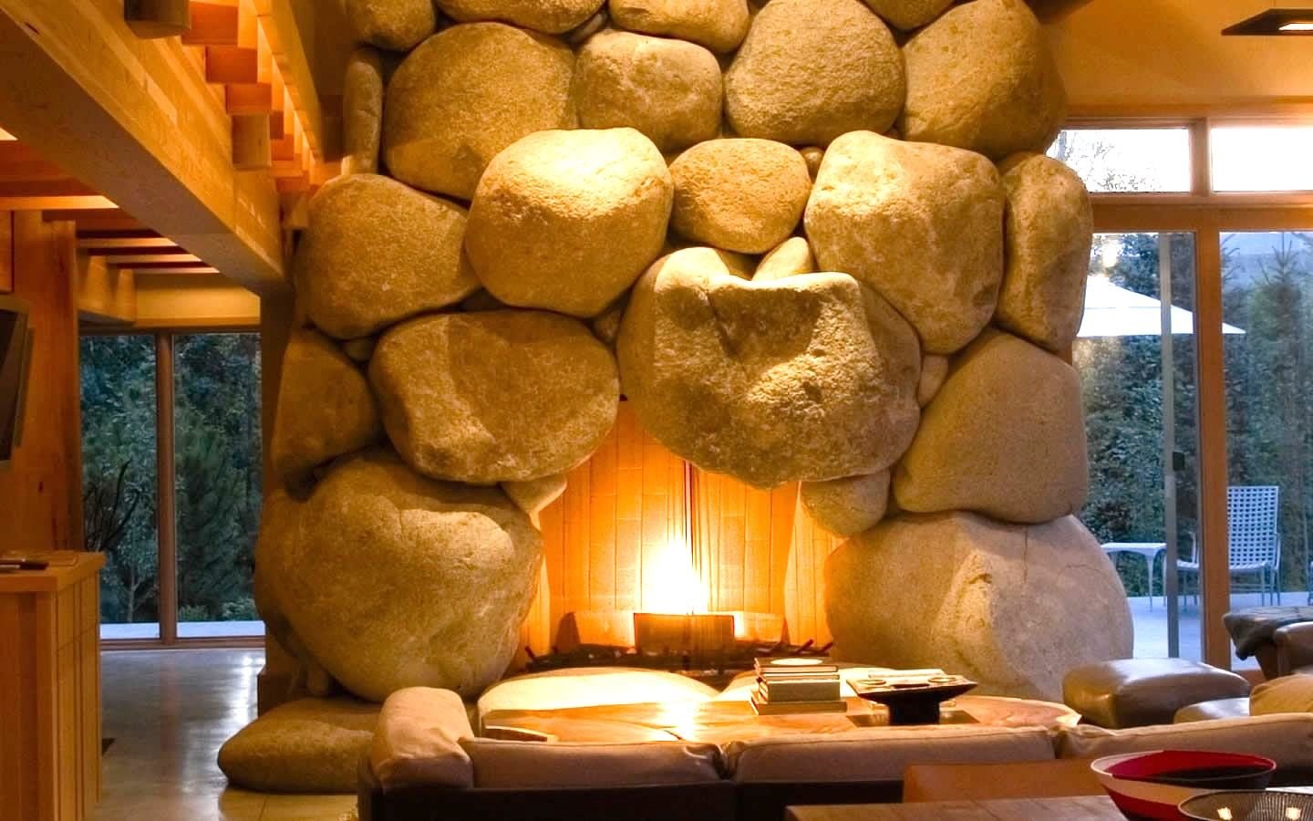 Сочетание камня и дерева в интерьере