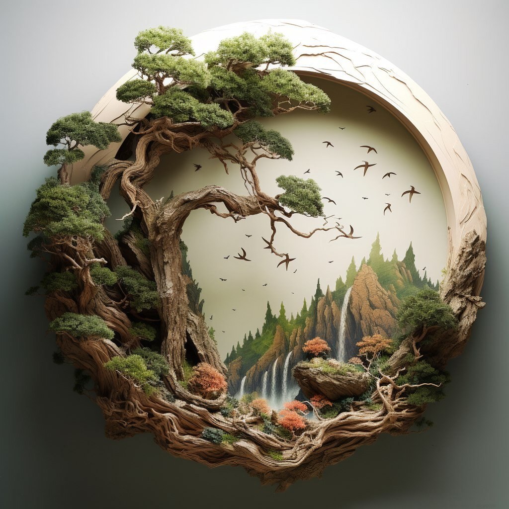 Панно из веток на стену в интерьере в стиле Ваби Саби