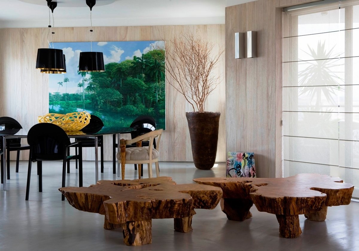 Дерево в интерьере гостиной