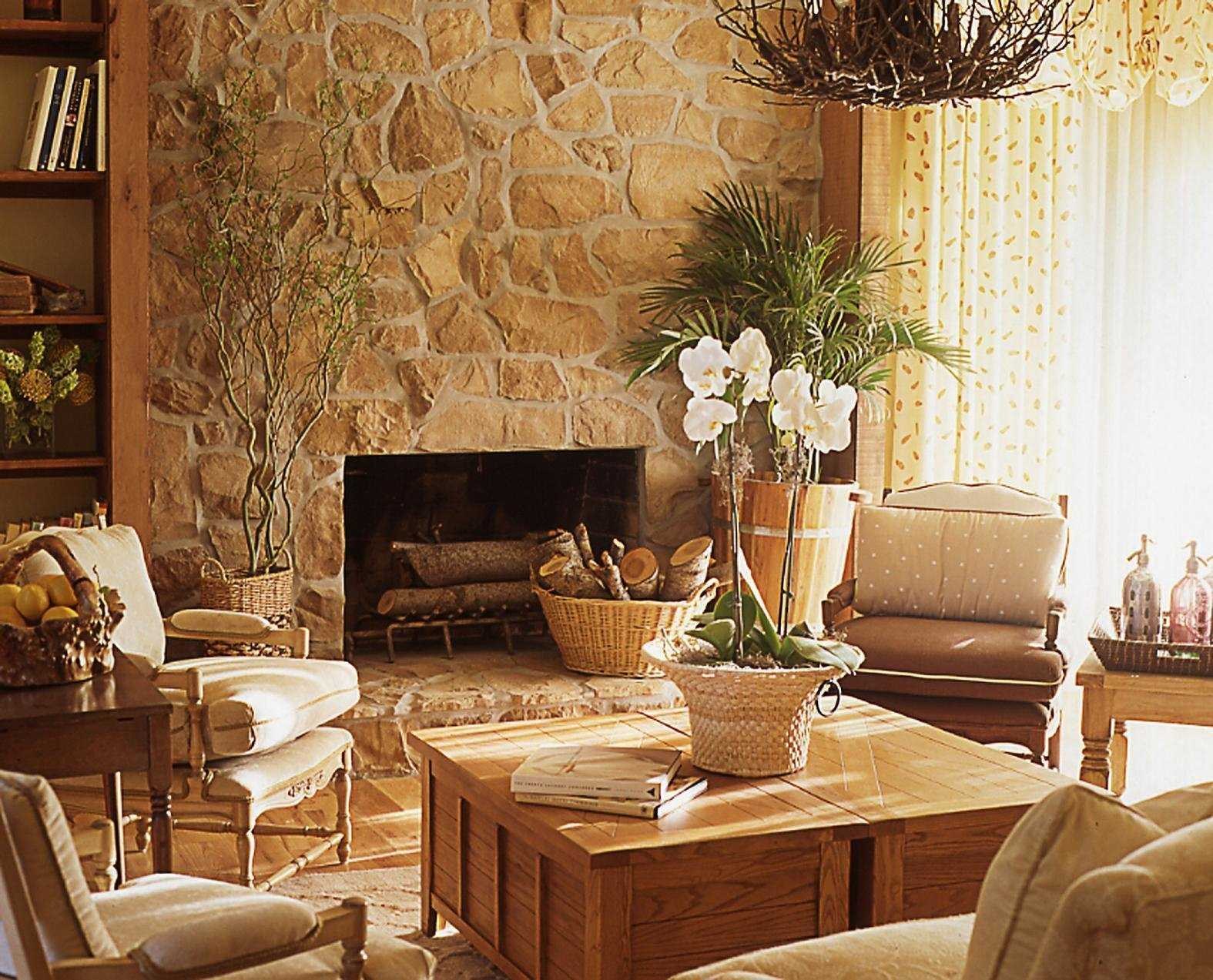 Интерьер натуральный с камином