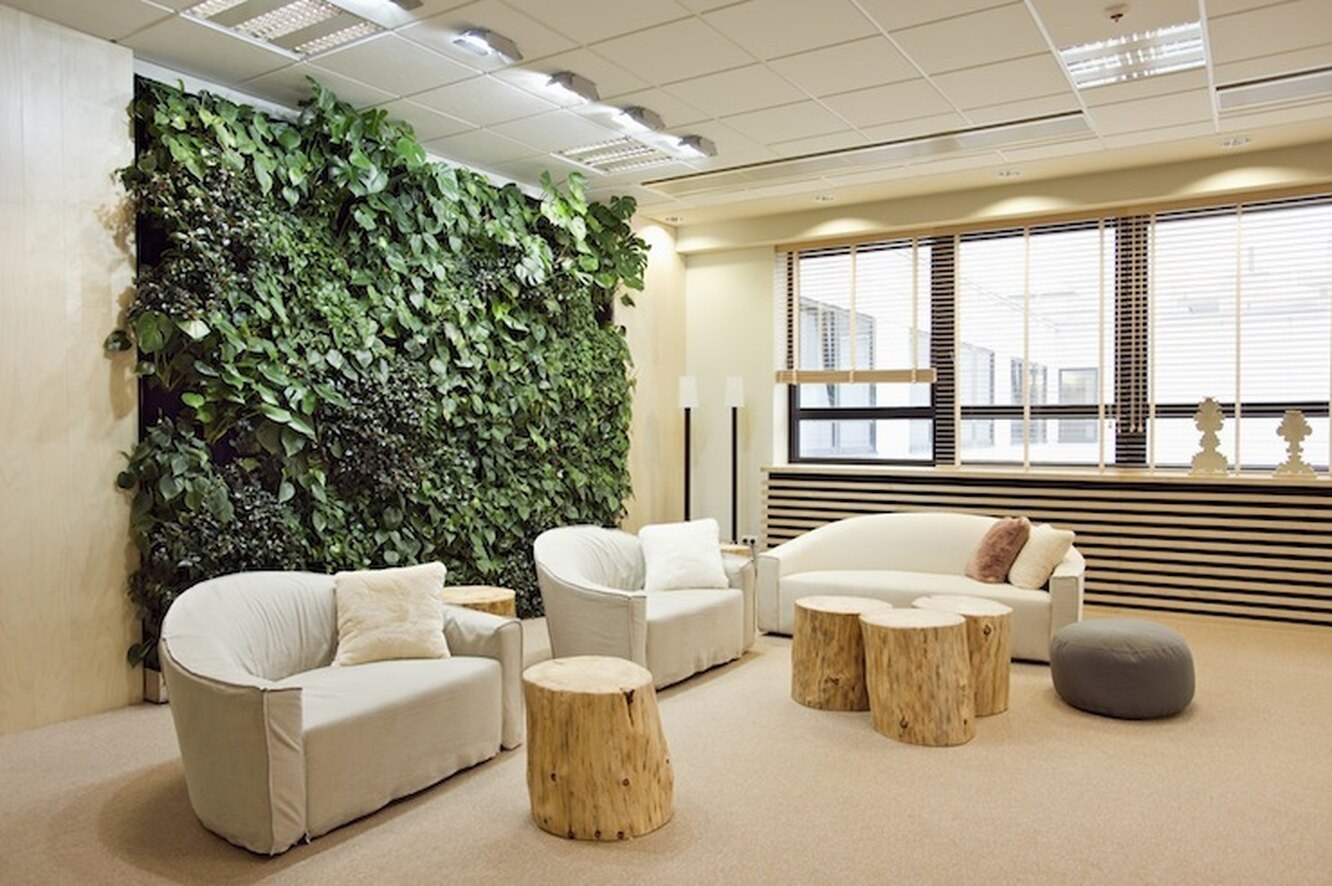 Экостиль в гостиной с фитостеной