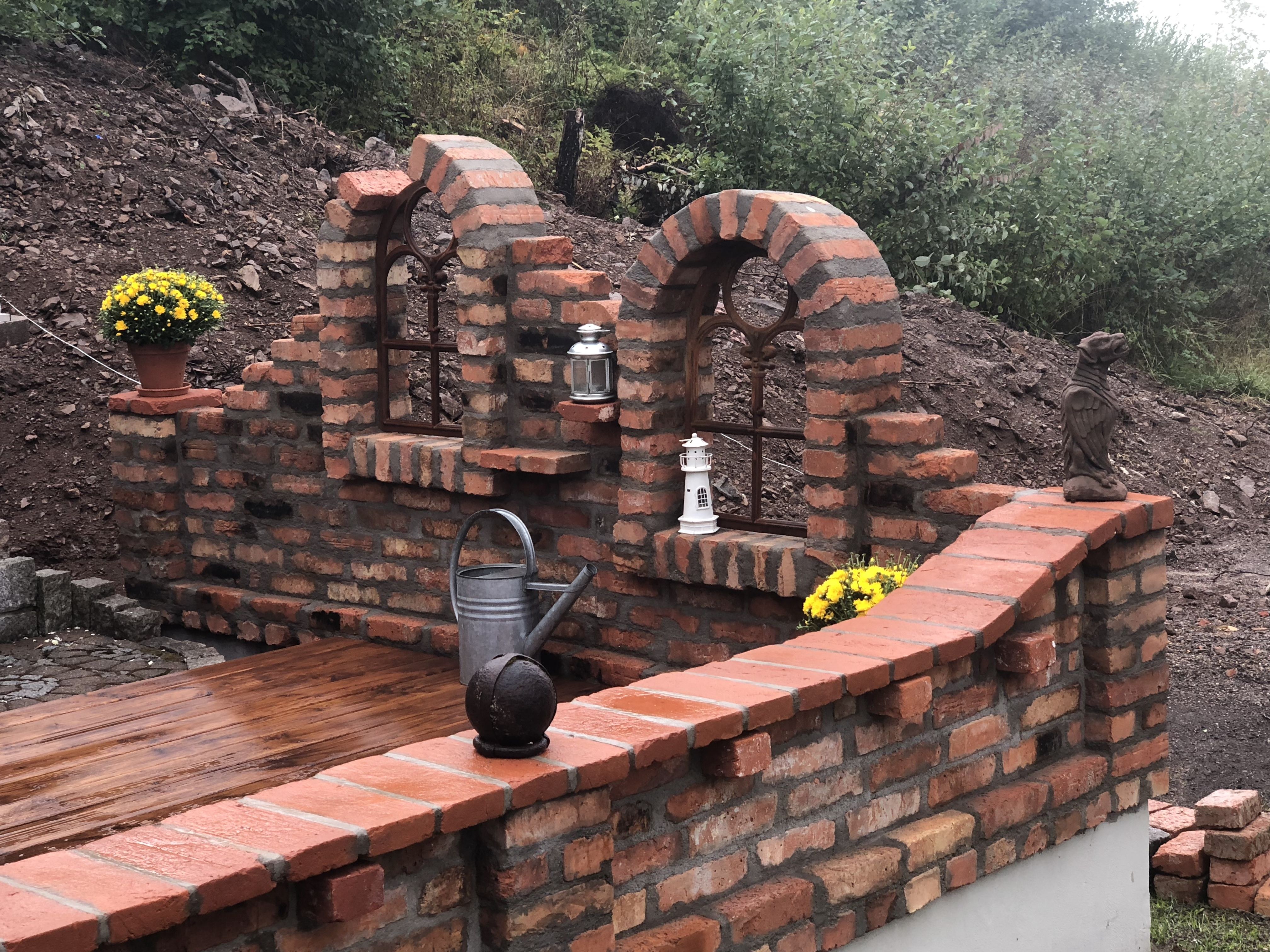 Руины в саду из кирпичей