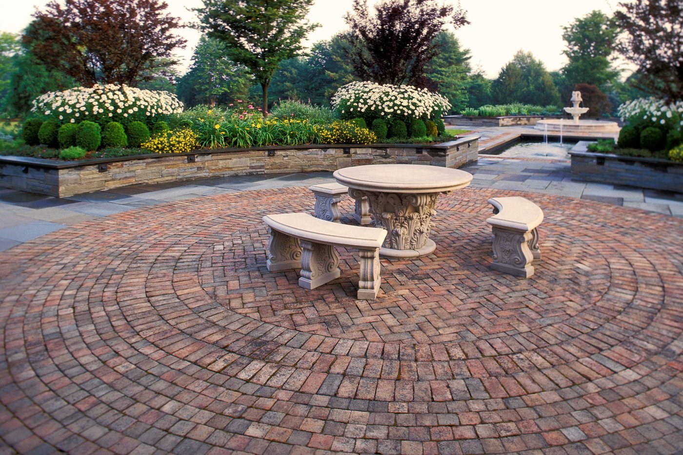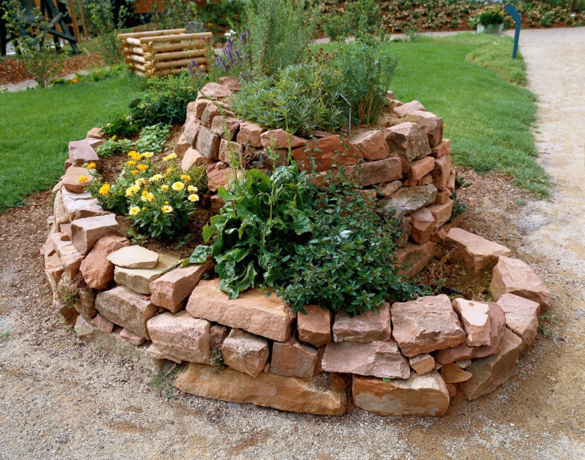 Круглые каменные клумбы