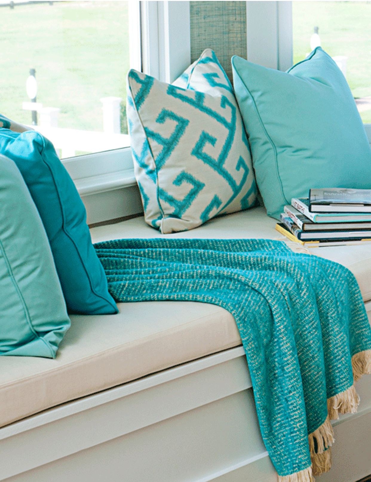 Бирюзовые подушки в интерьере