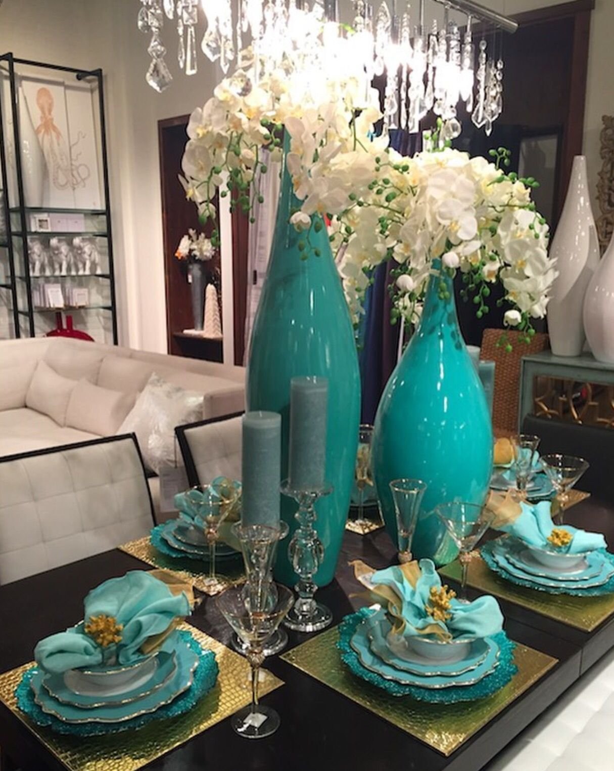 Сервировка в бирюзовом цвете