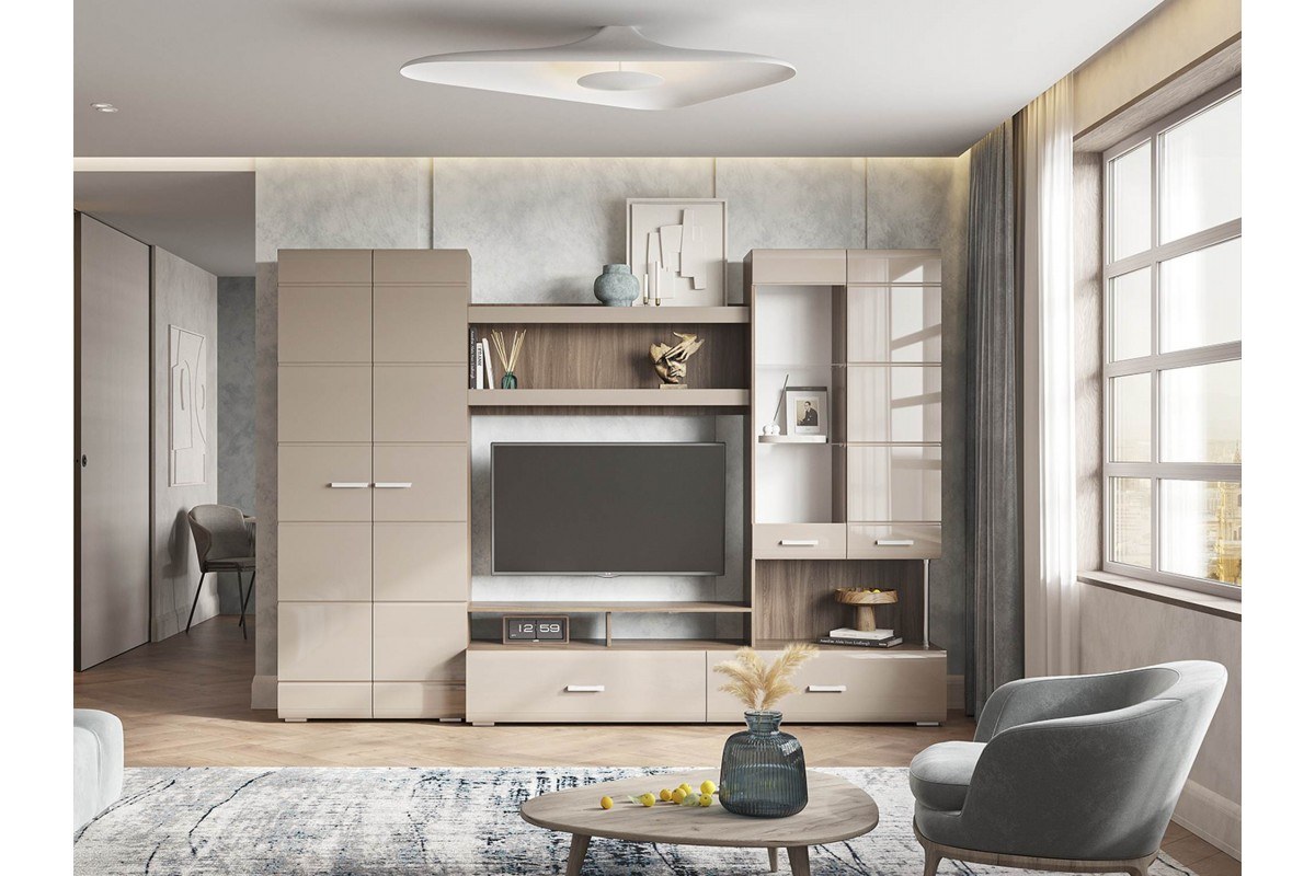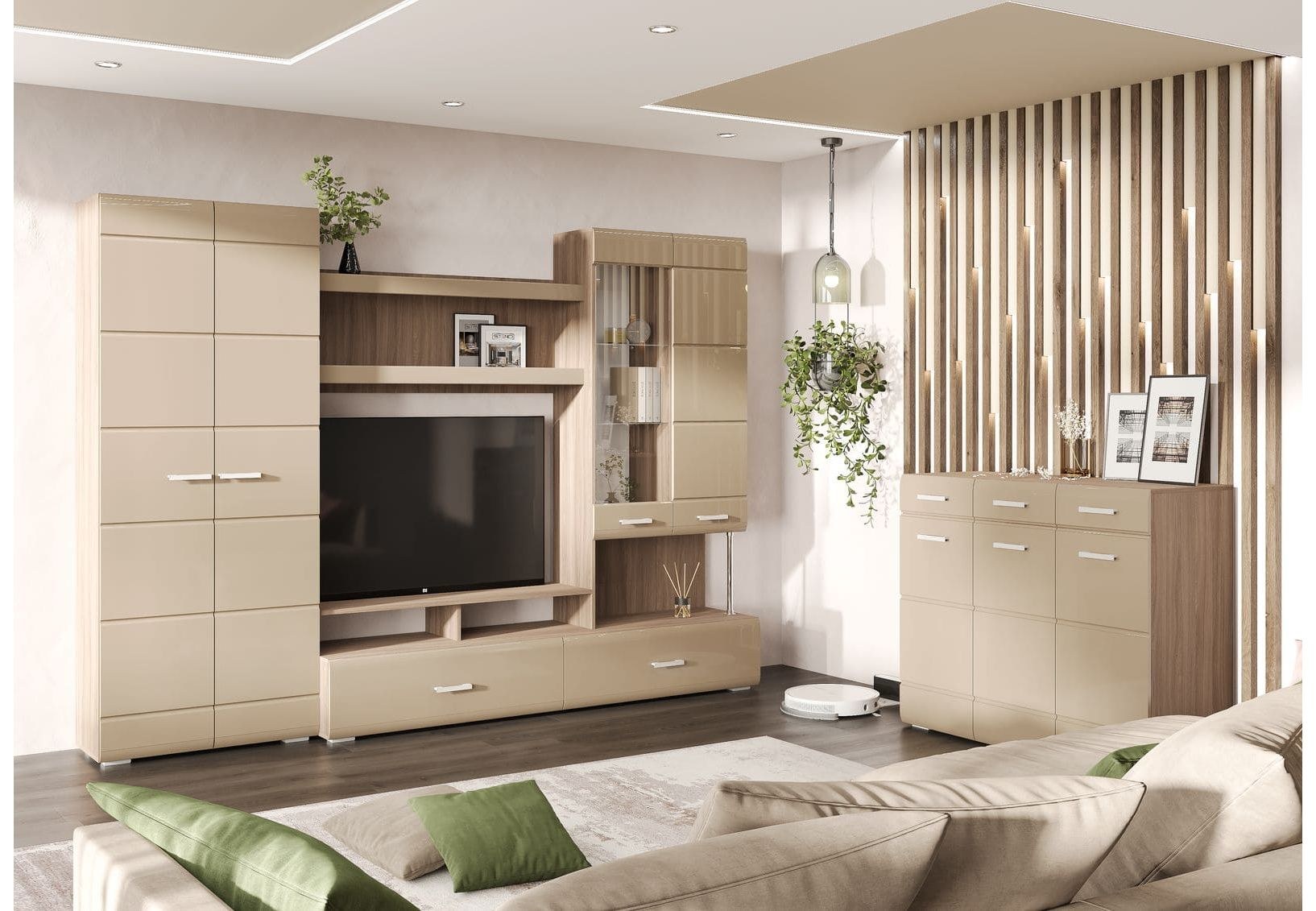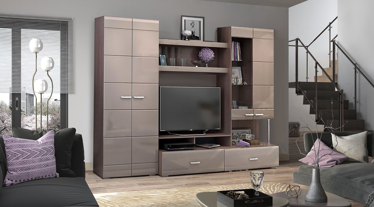 Гостиная Вегас-1 шимо темный/кофе с молоком глянец