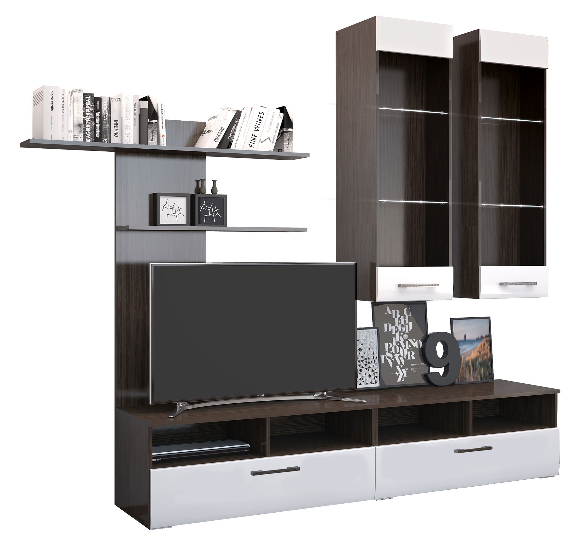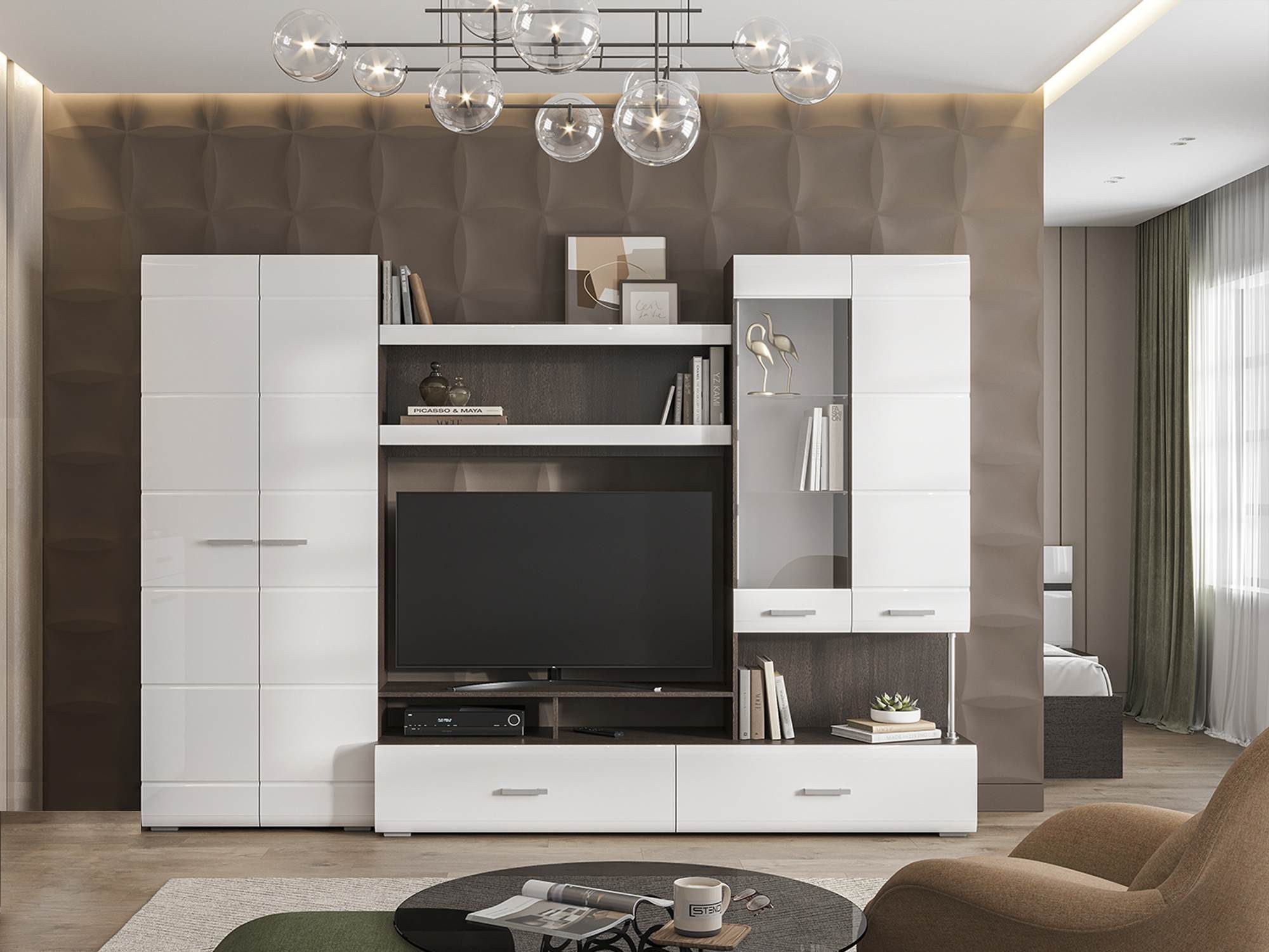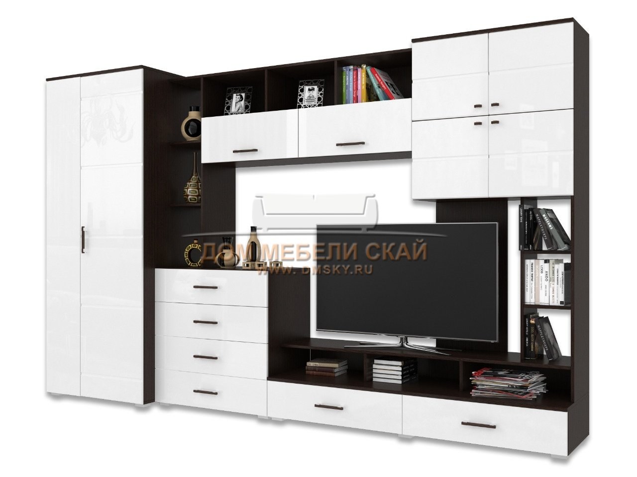 Гостиная Вегас-1 МДФ белый глянец/венге Стендмебель