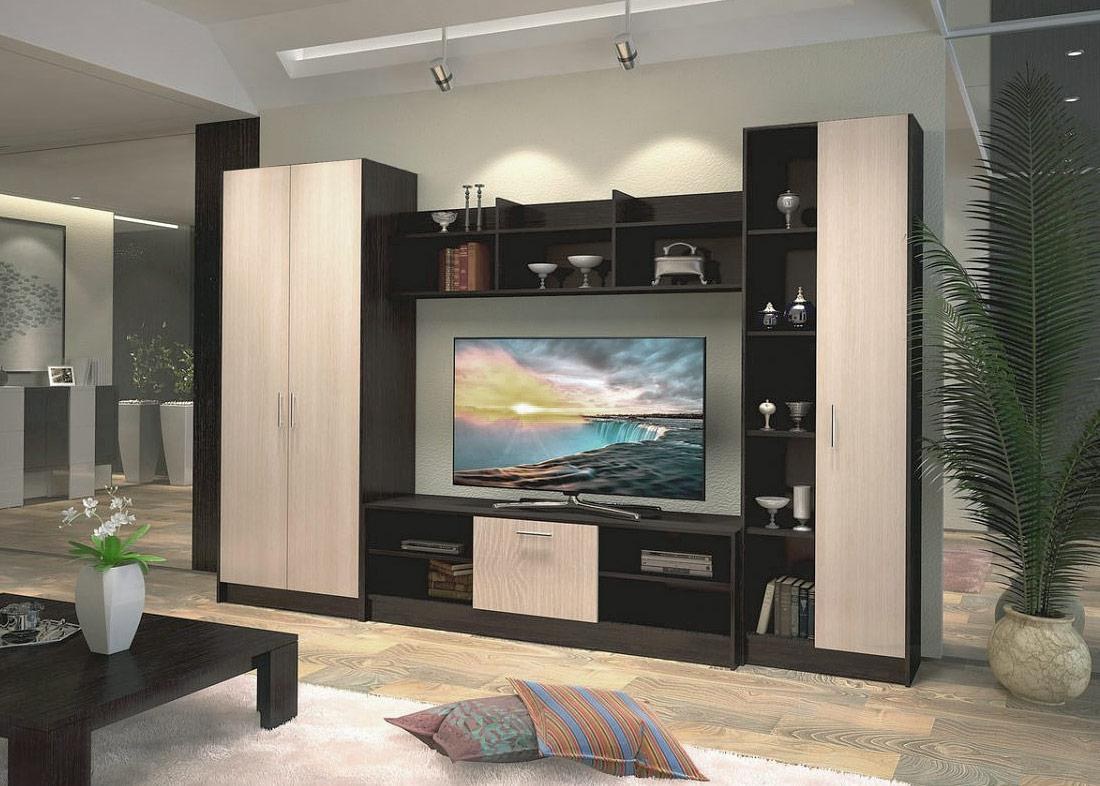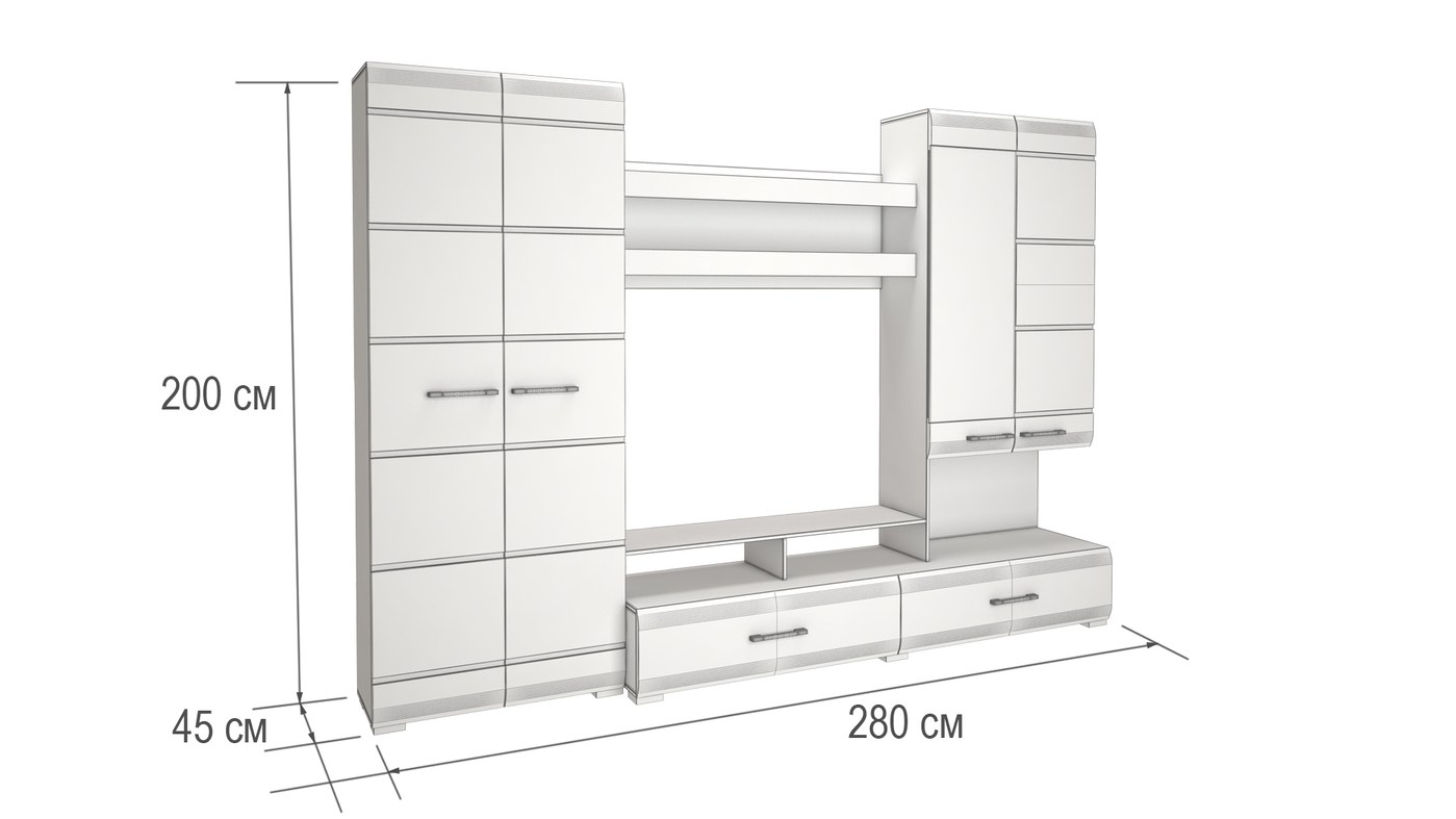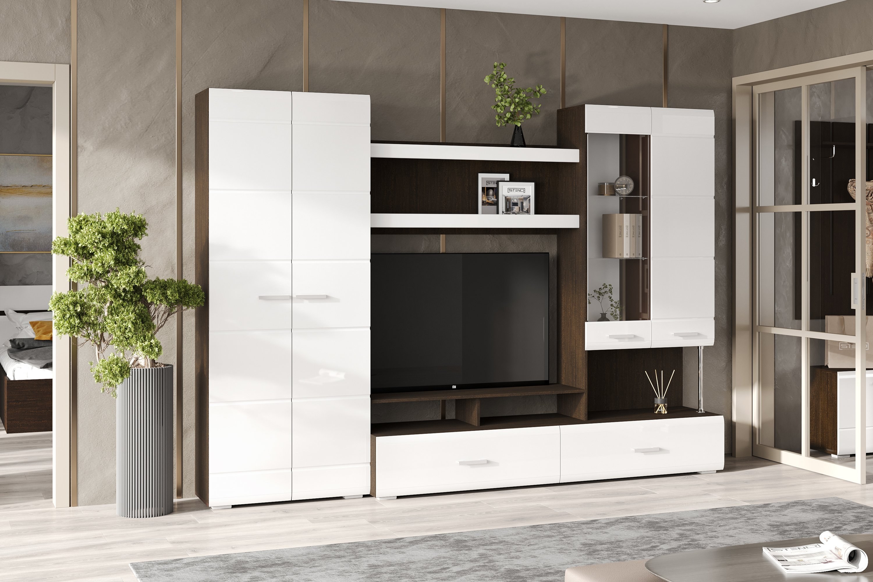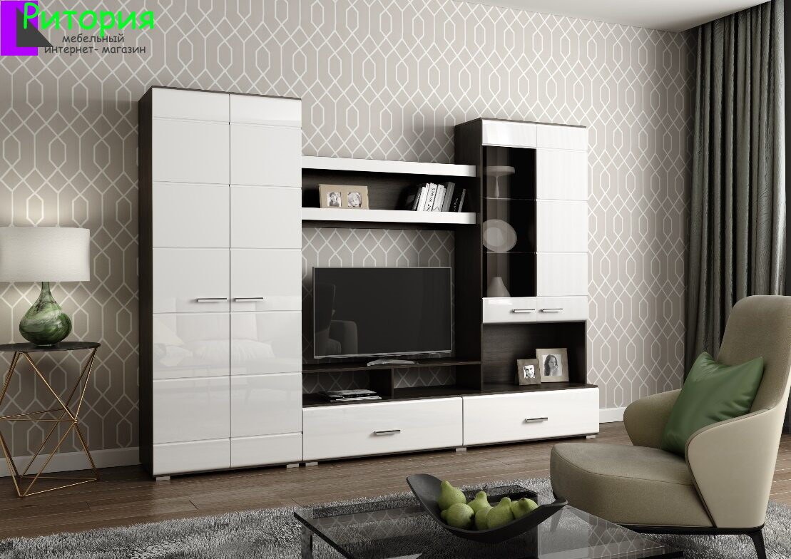 Гостиная Вегас-1 МДФ белый глянец/венге Стендмебель