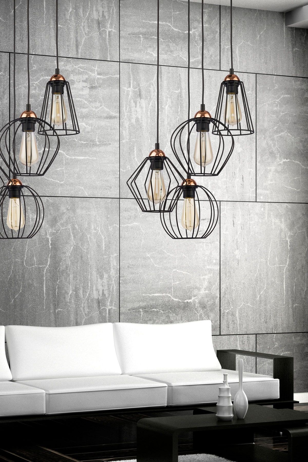 Люстры лофт в интерьере гостиной