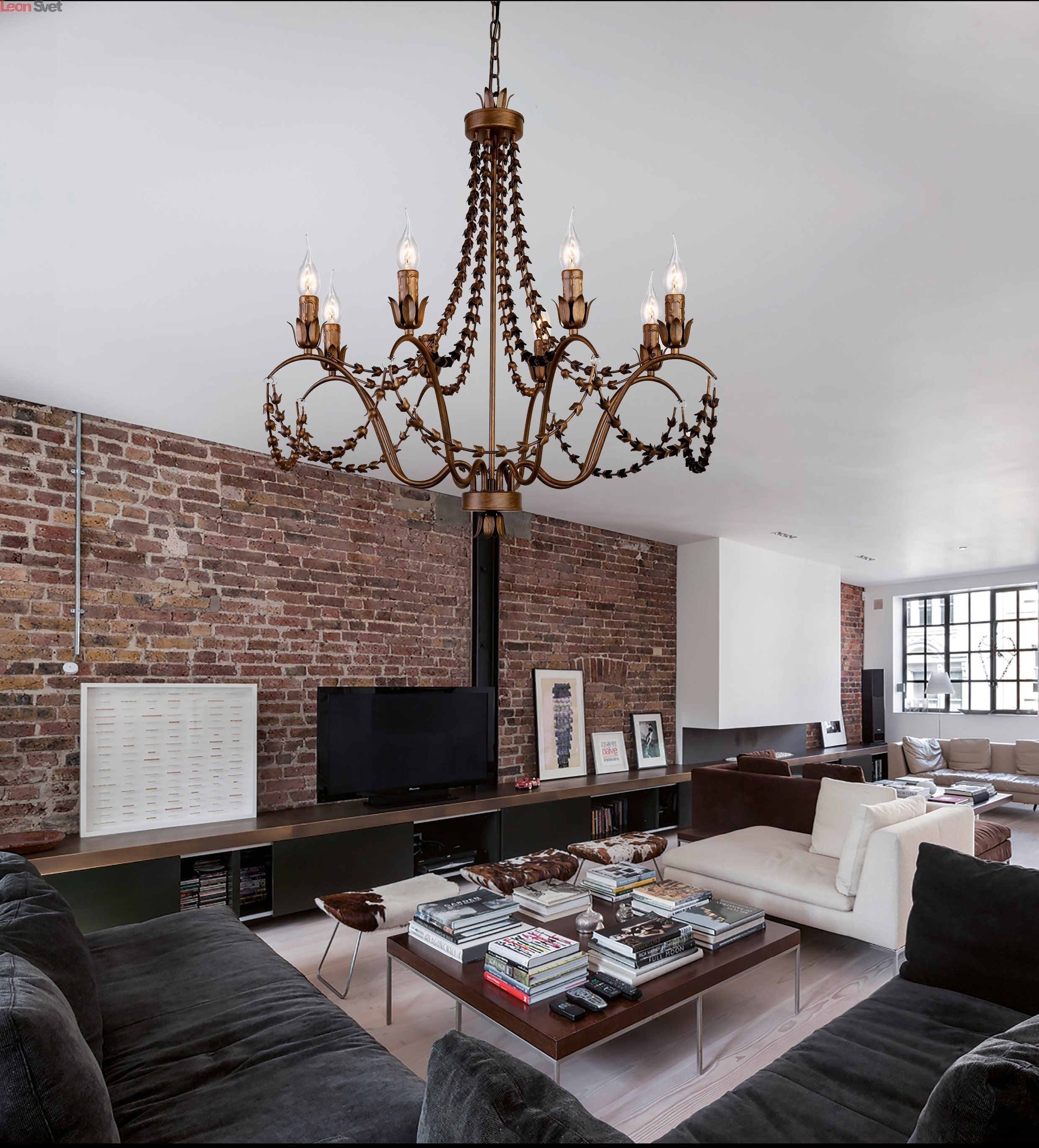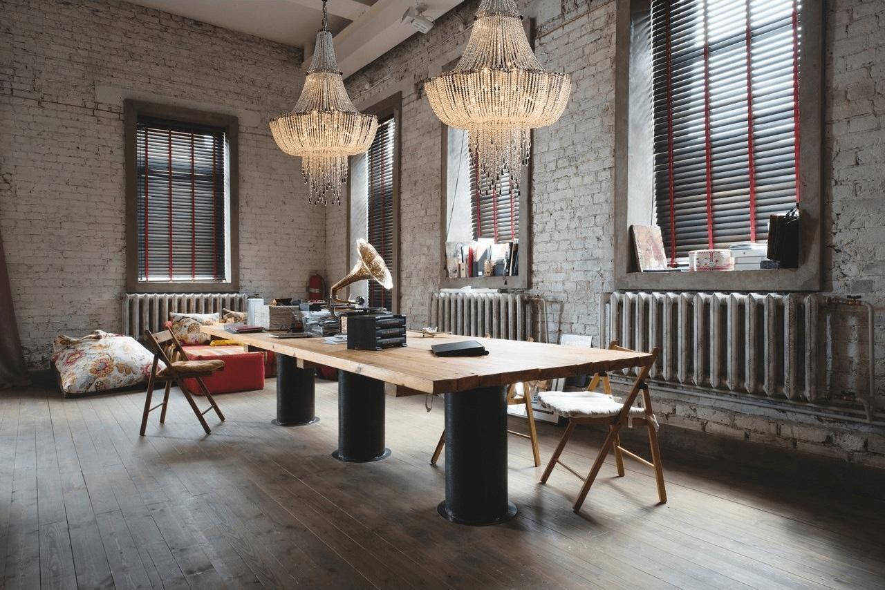 Хрустальная люстра в интерьере лофт