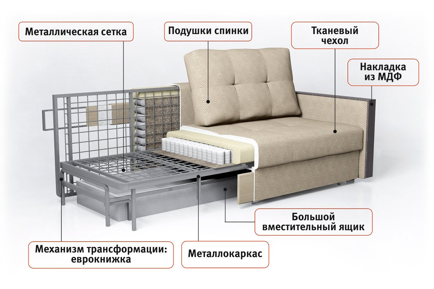 Диван аккордеон с пружинным блоком из независимых пружин 170