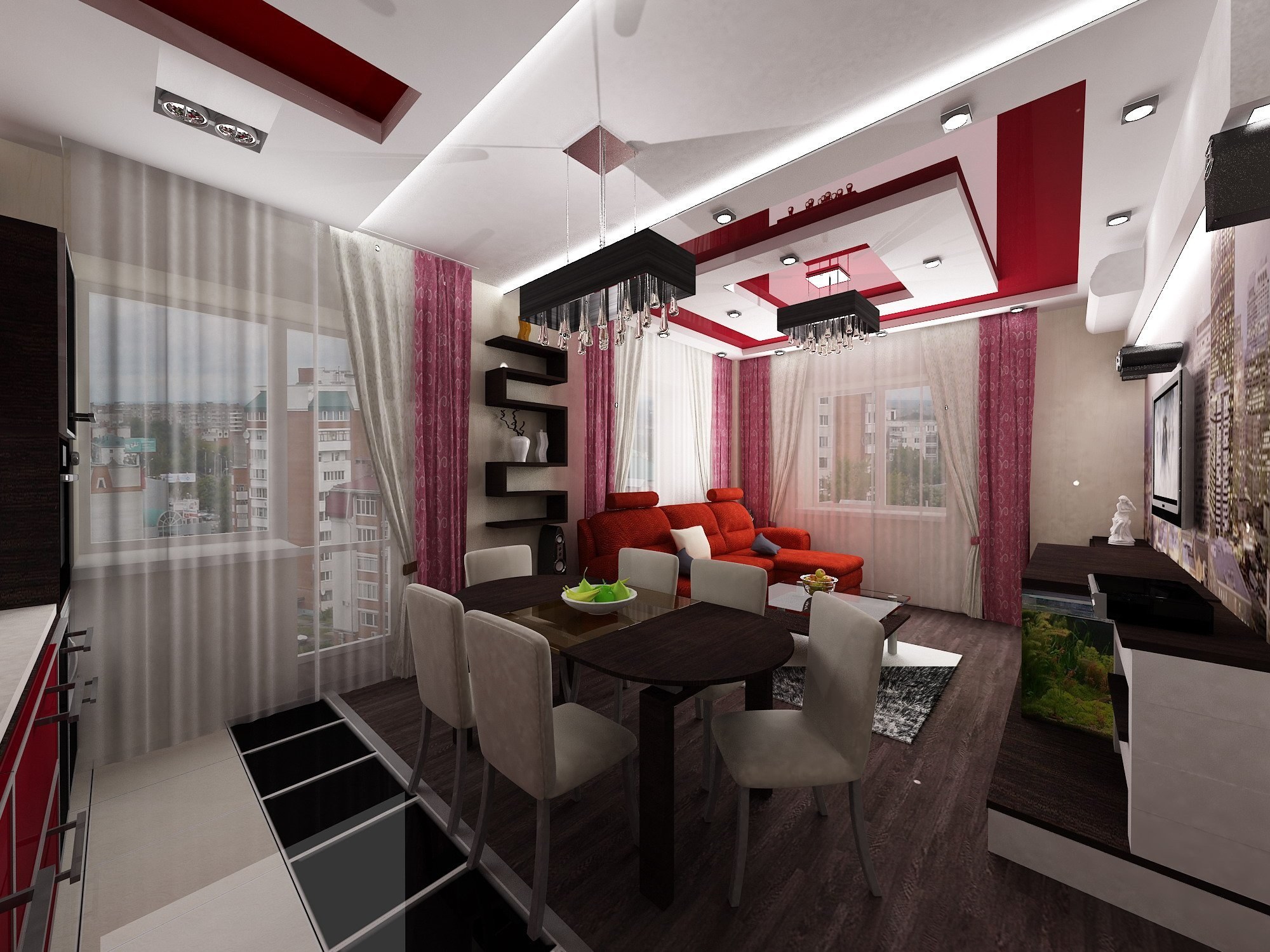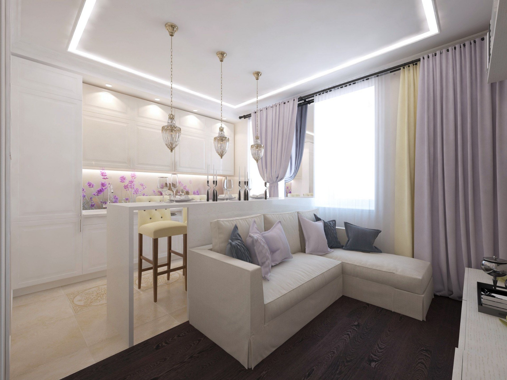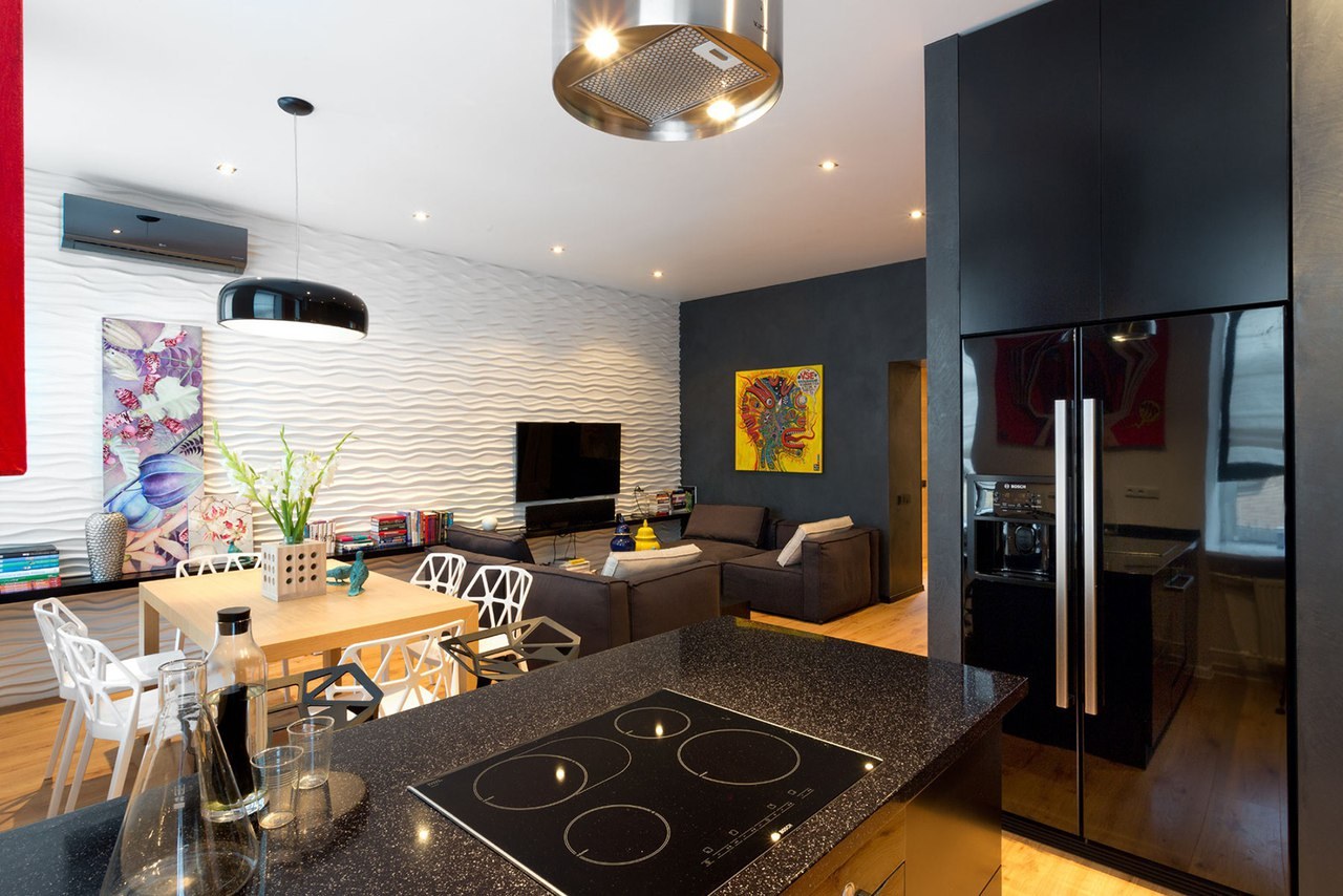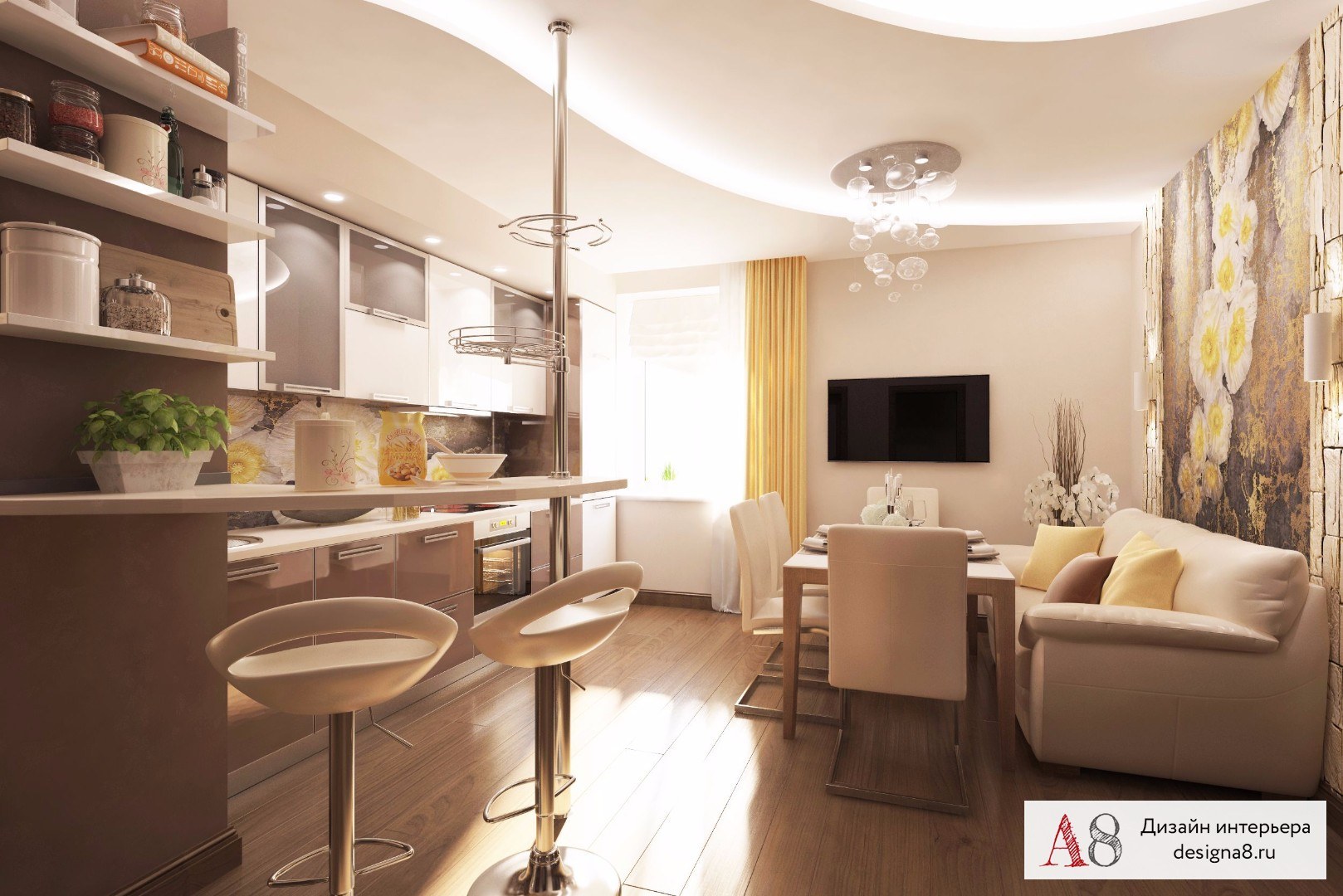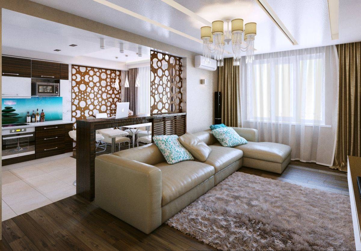 Зонирование кухни и гостиной