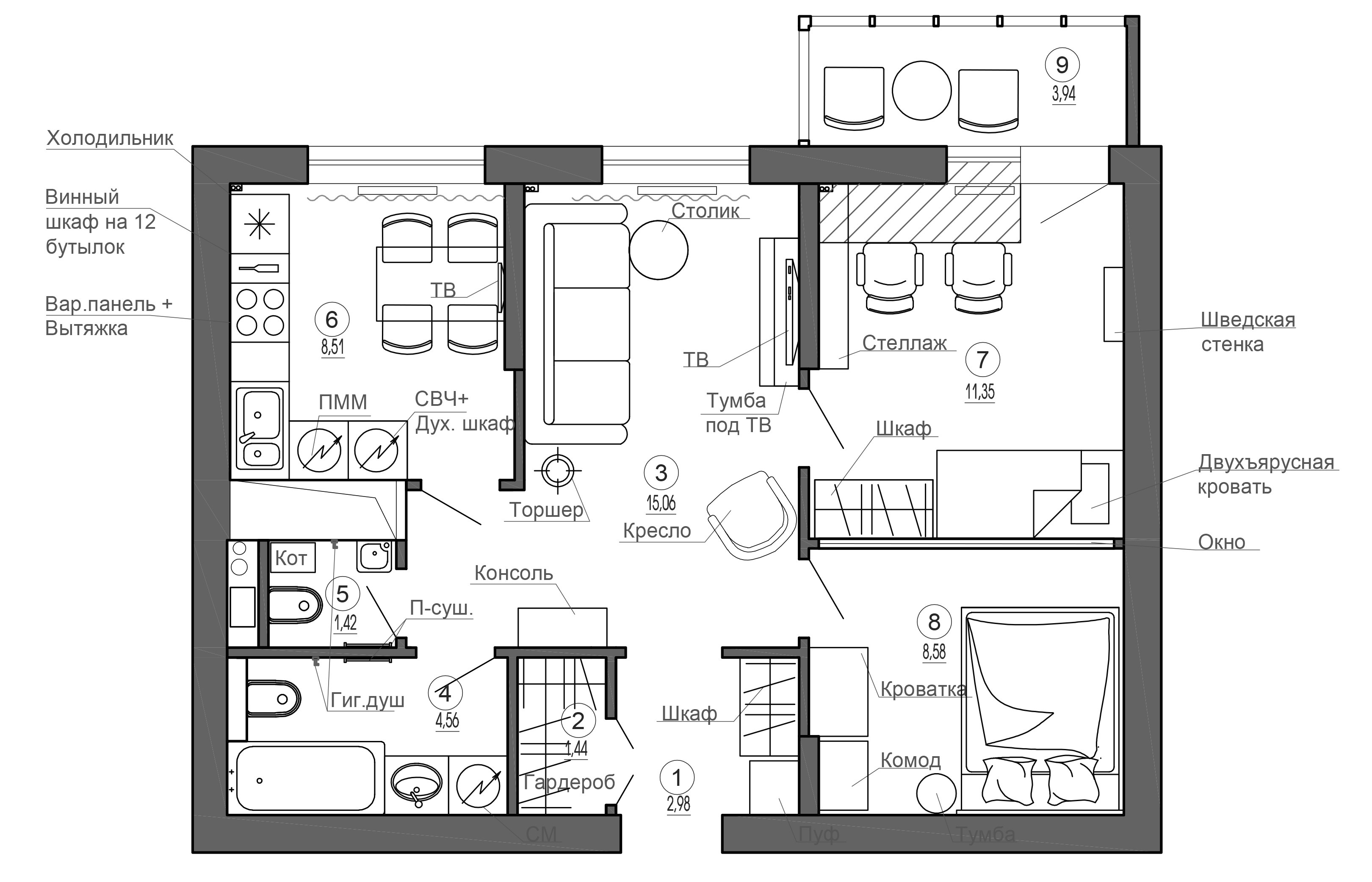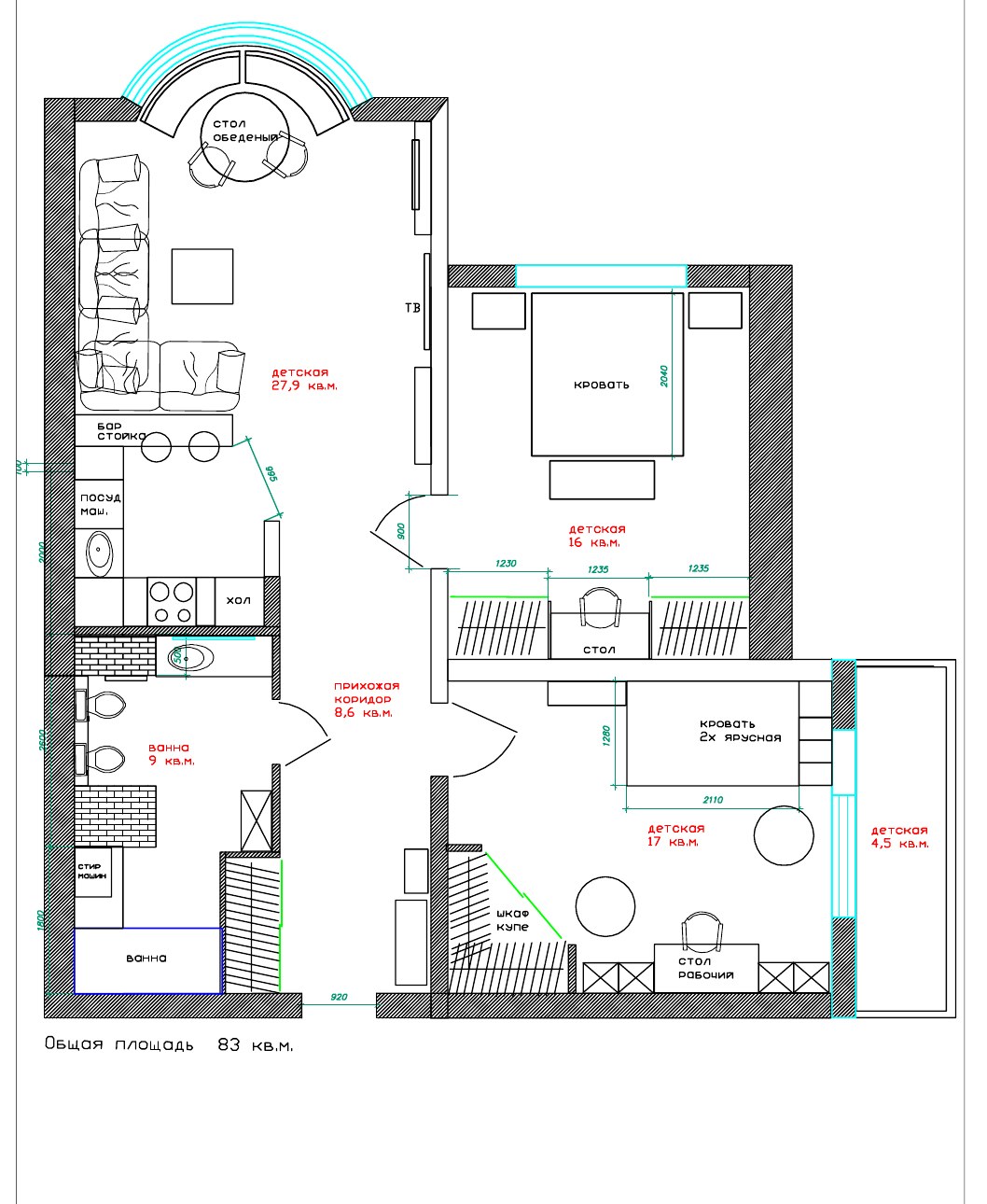 Планировка квадратной квартиры 80 метров