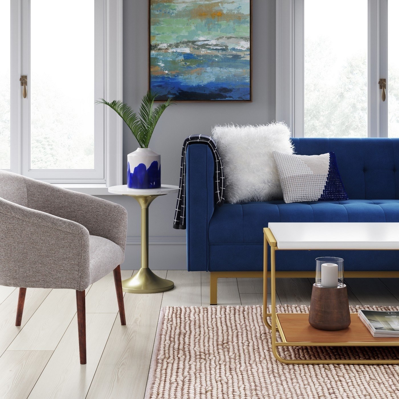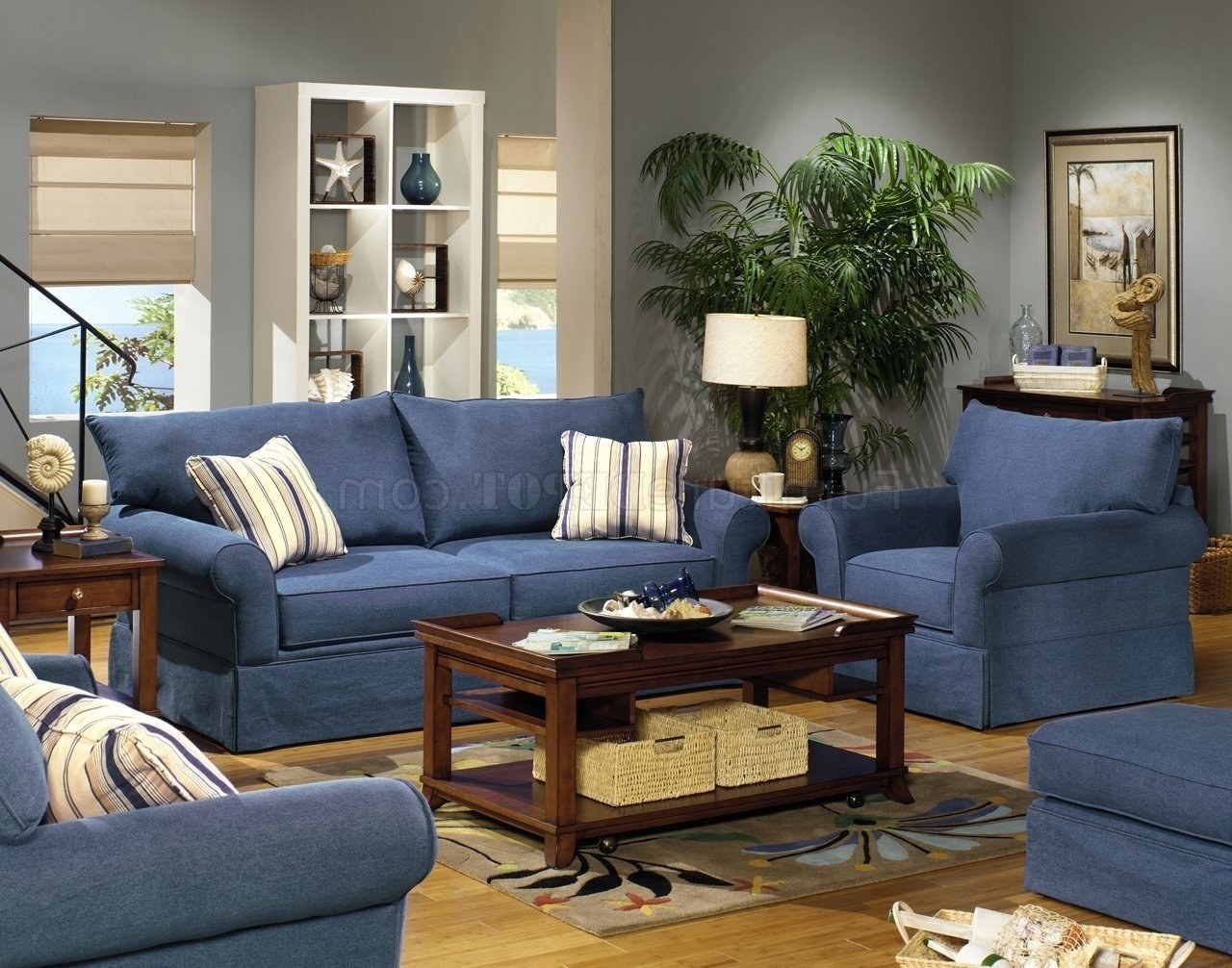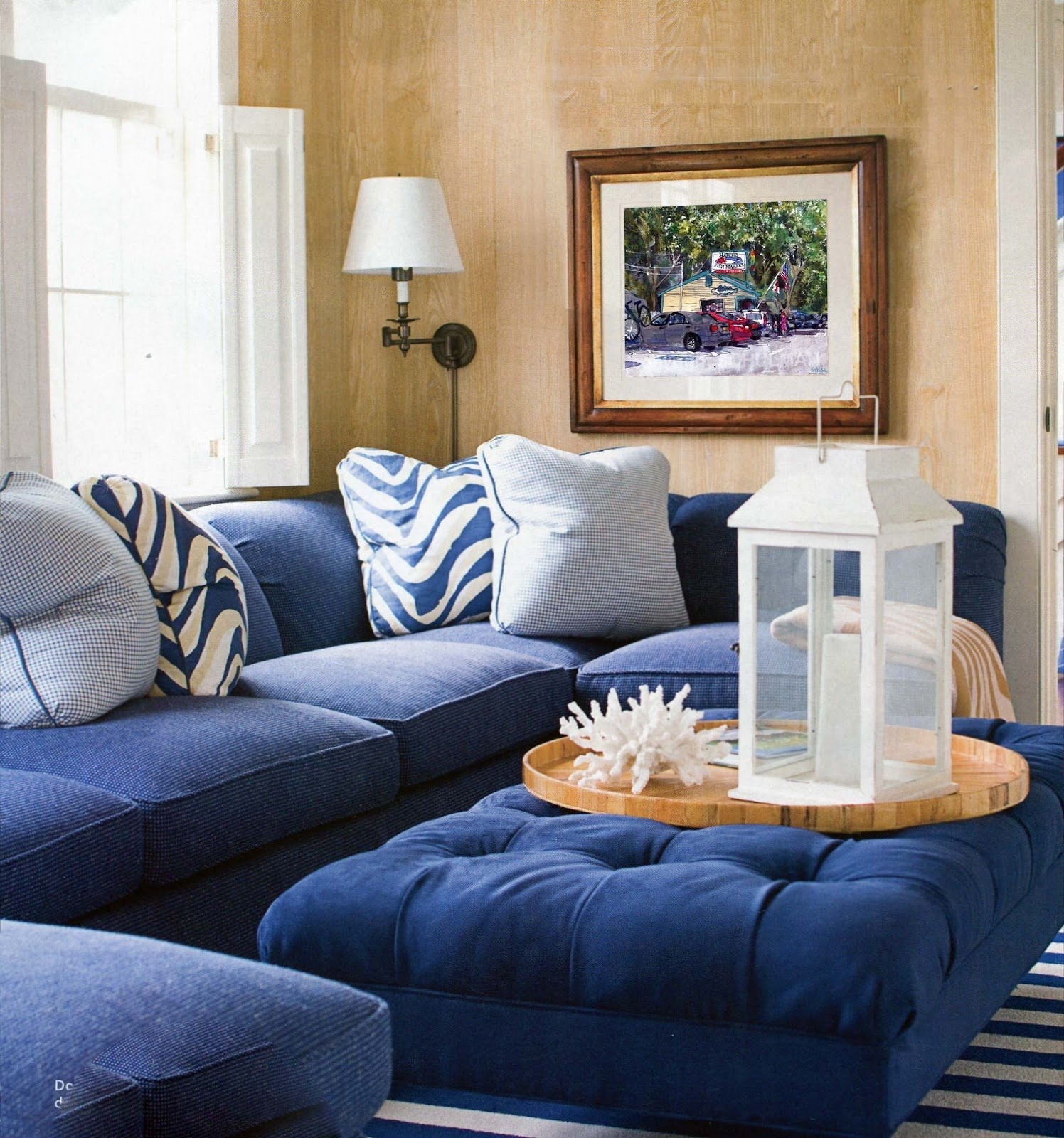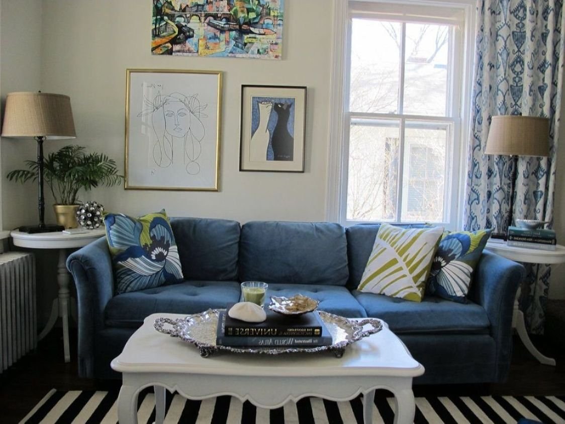 Гостиная с синим диваном