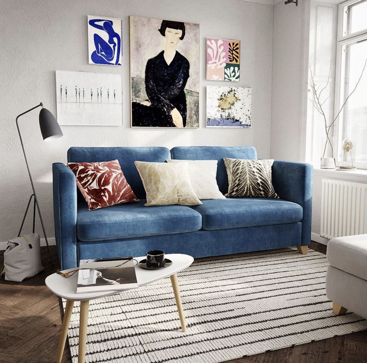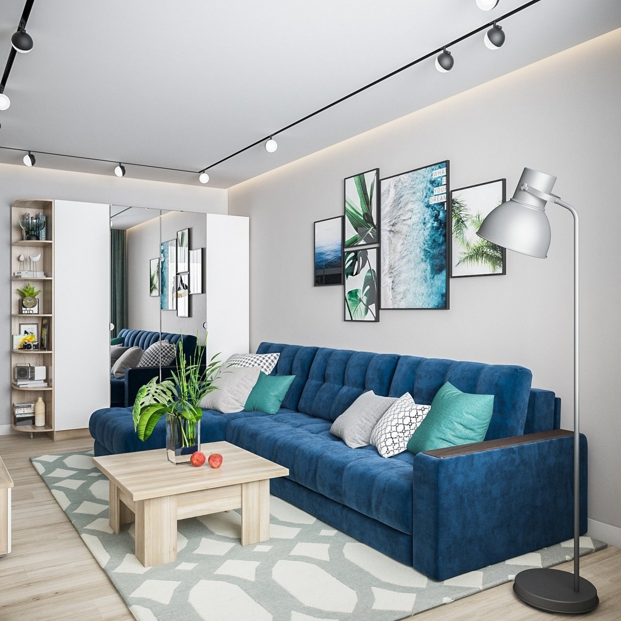 Синяя гостиная в скандинавском стиле