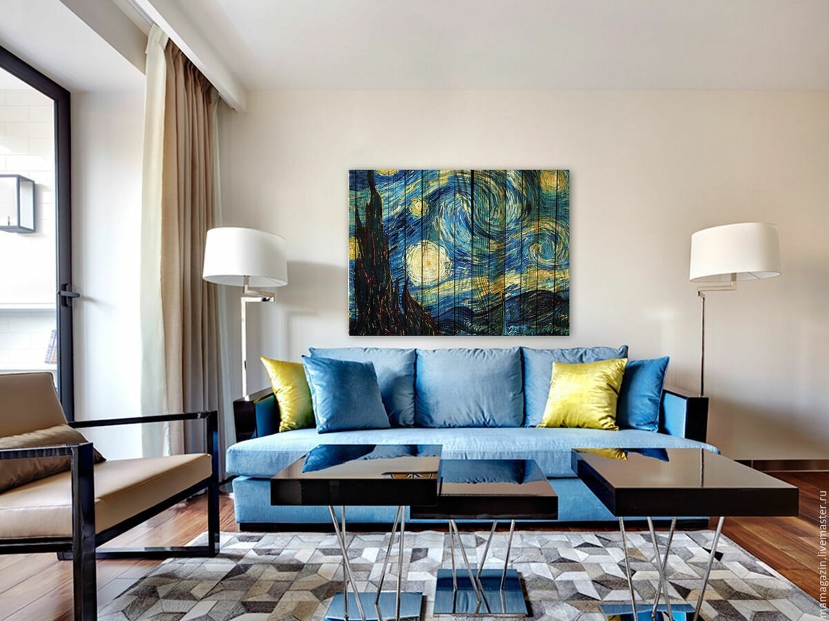 Голубой диван в интерьере
