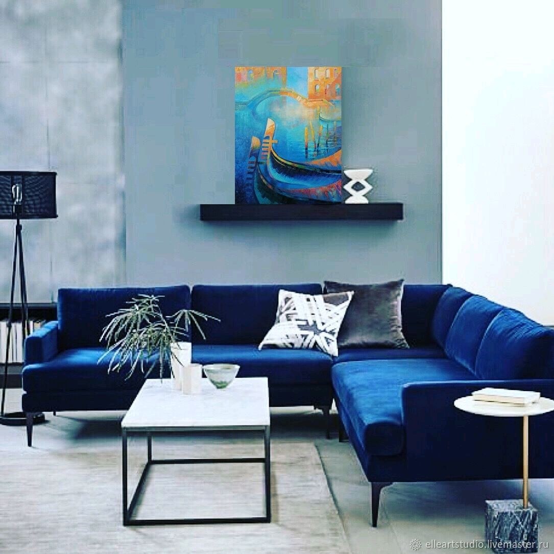 Синий диван в интерьере