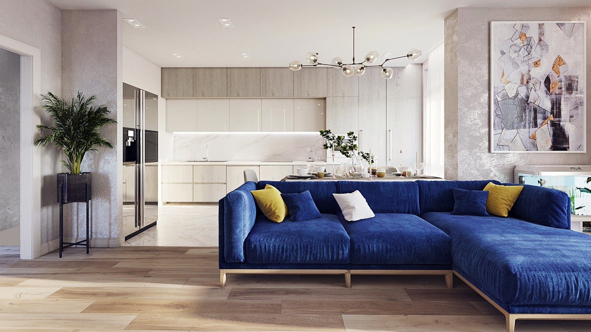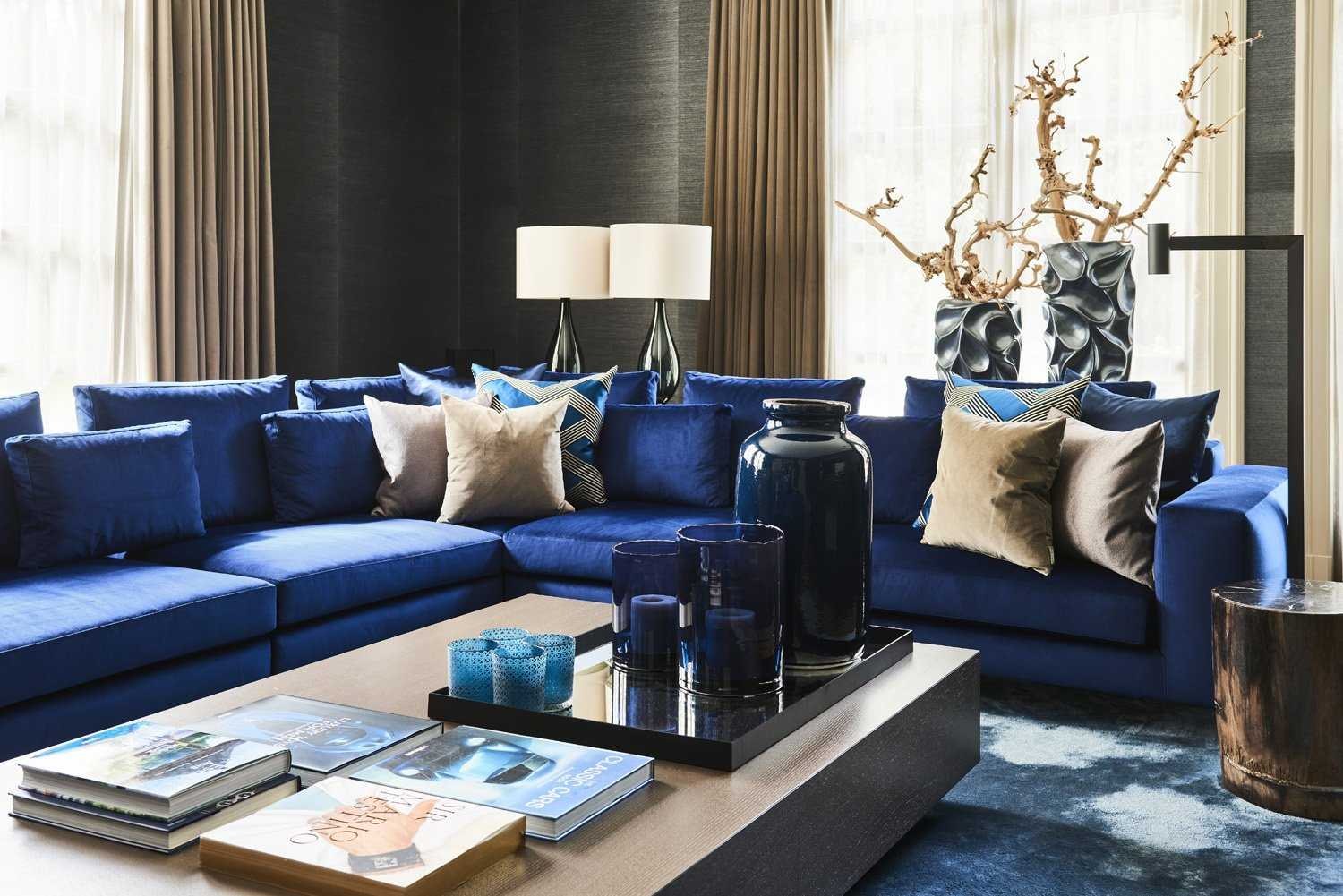 Интерьер с синим диваном (59 фото)
