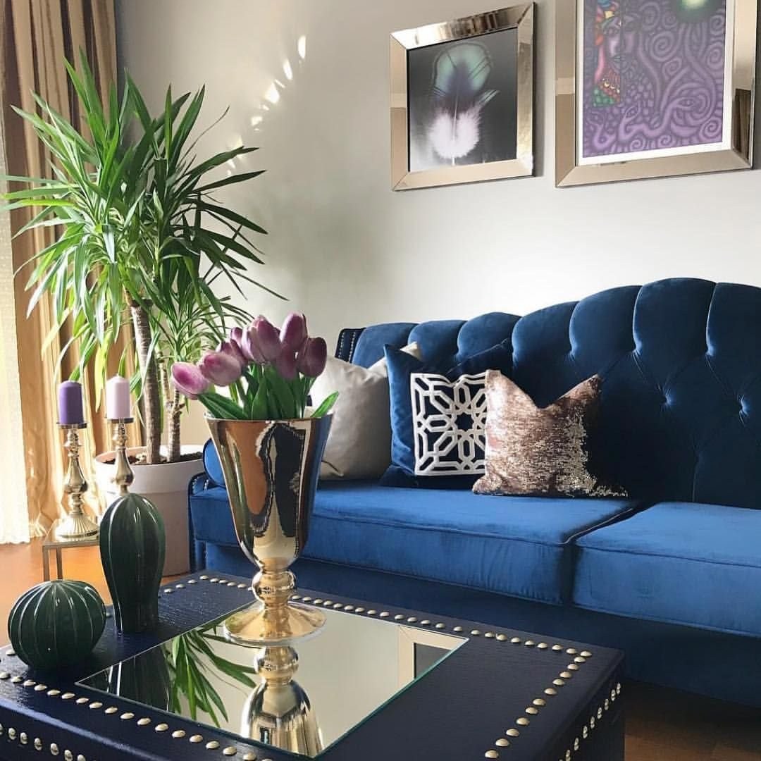 Гостиные с синим диваном