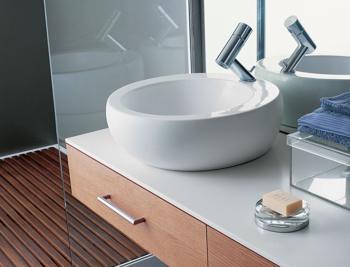 Накладные раковины для ванной на столешницу в интерьере (47 фото)