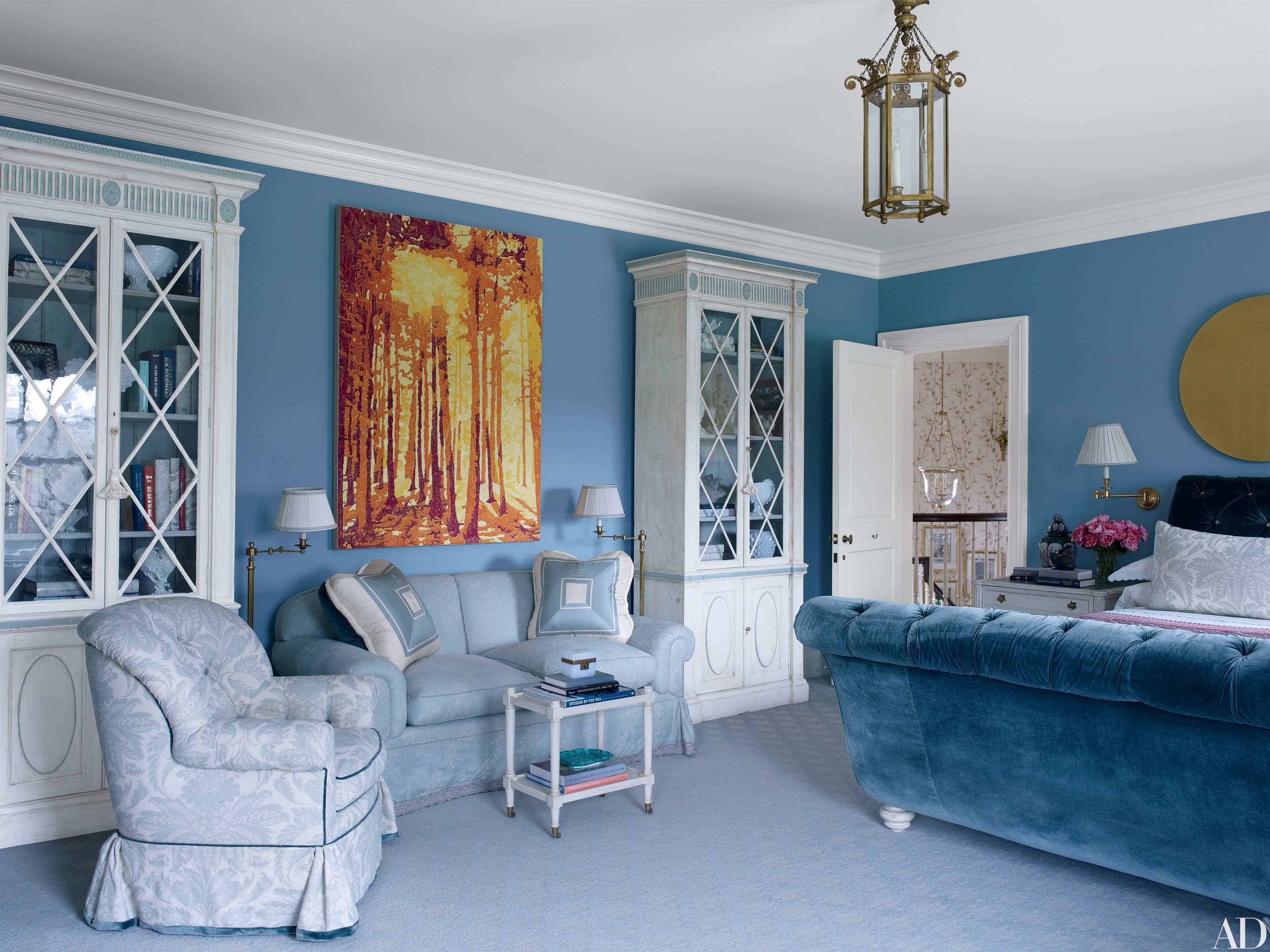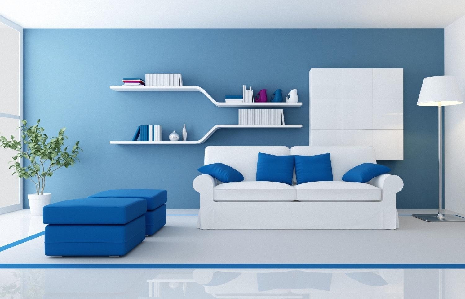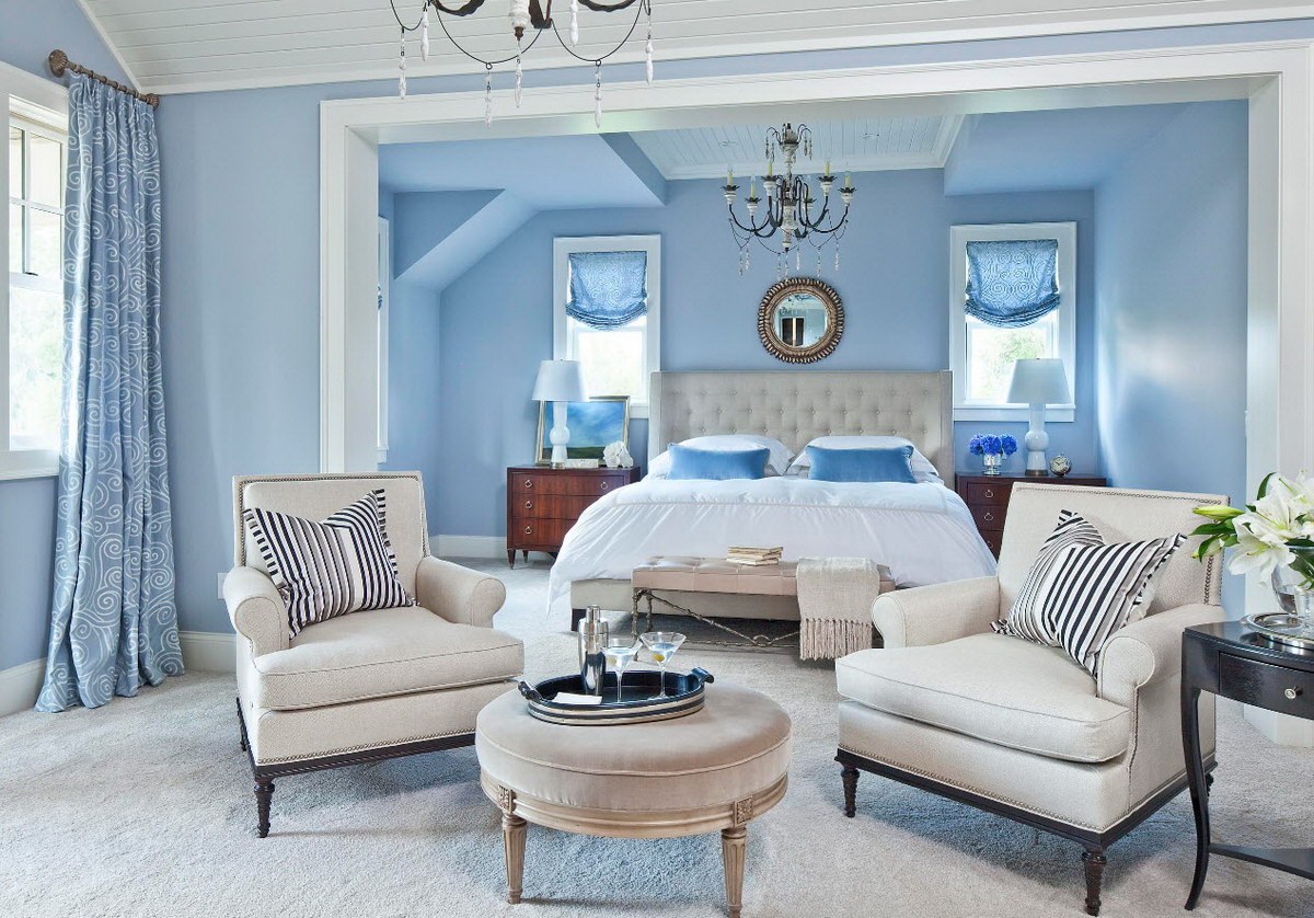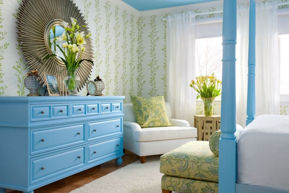 Голубые стены в интерьере