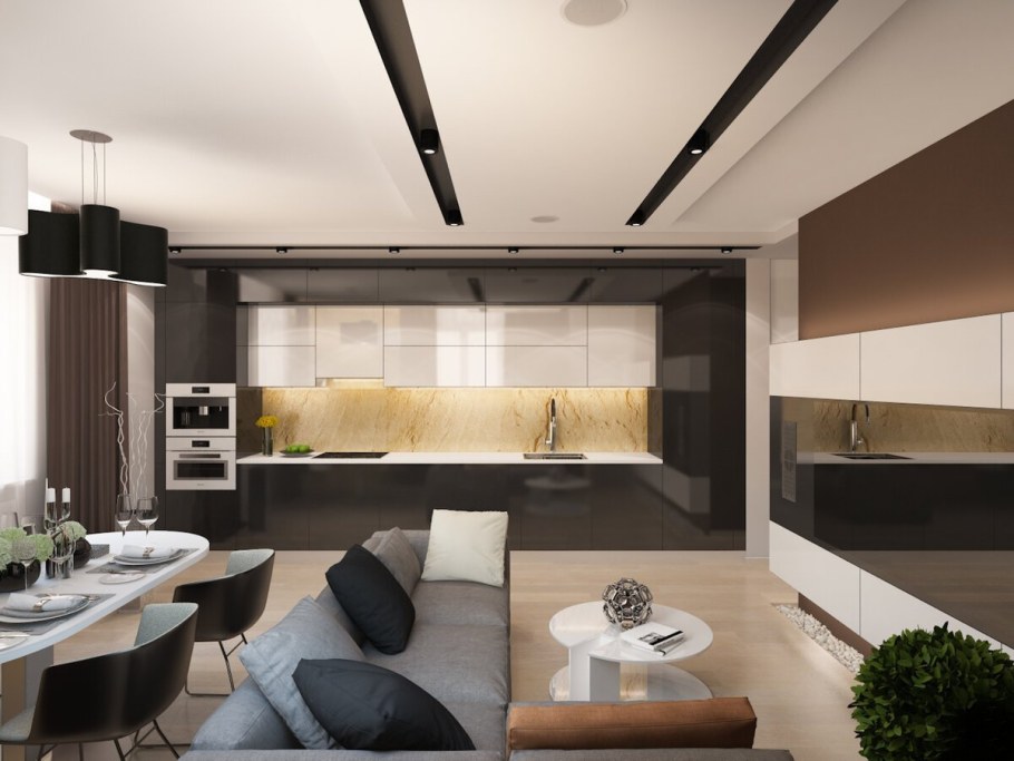 Дизайн гостиной с кухней в современном стиле (58 фото)