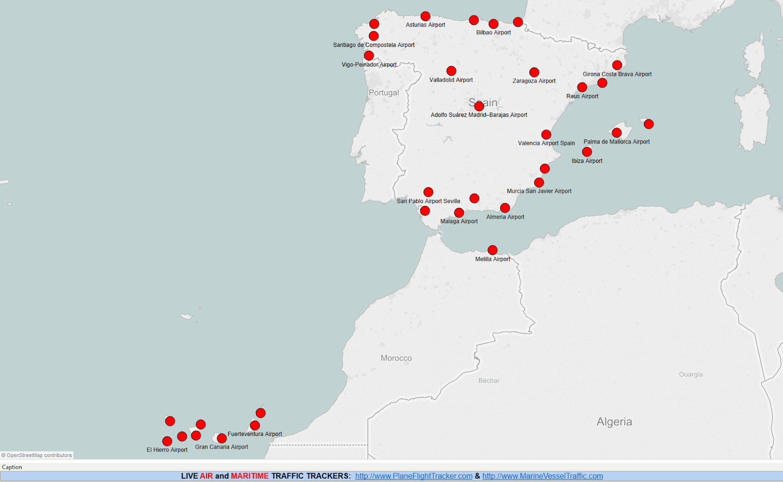 Аэропорты Испании международные на карте