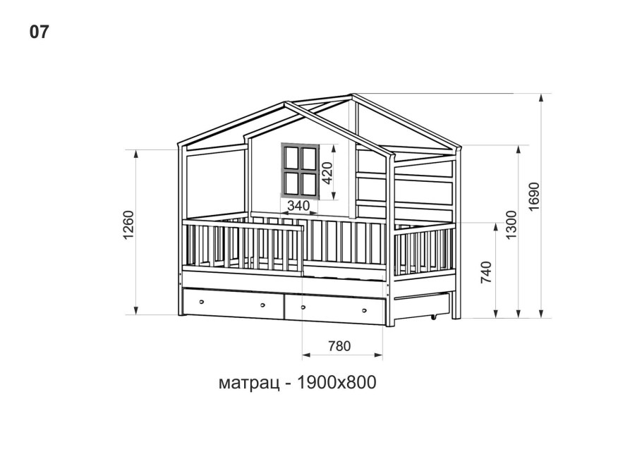 Кроватка домик чертеж с размерами 160х80