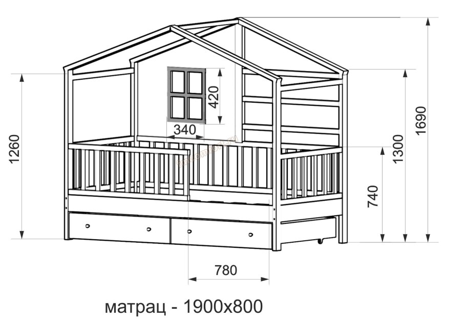 Чертеж детской кровати домика 160х80