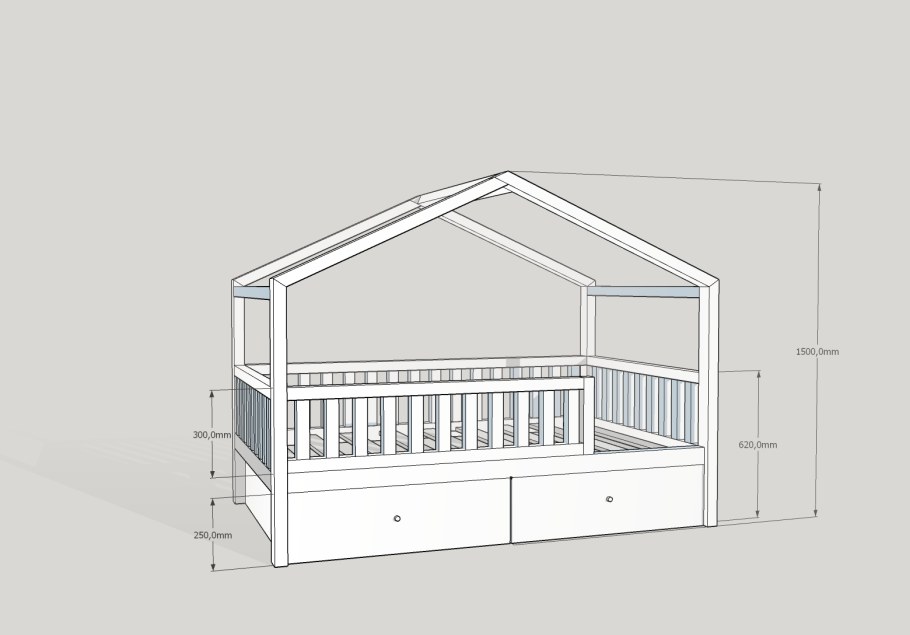 Чертёж детской кроватки домик с размерами