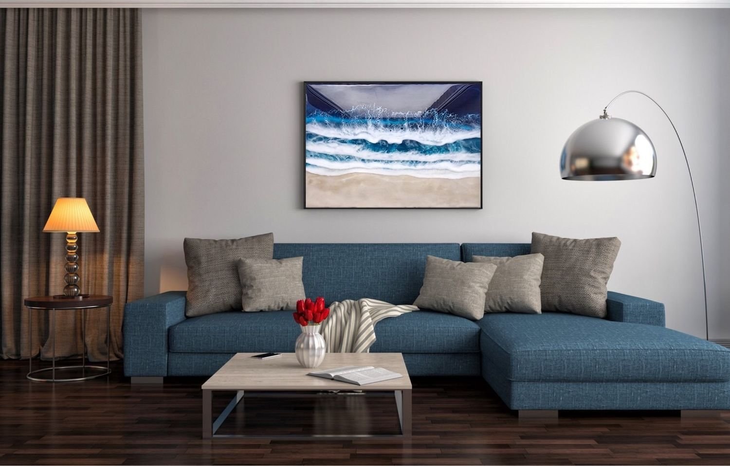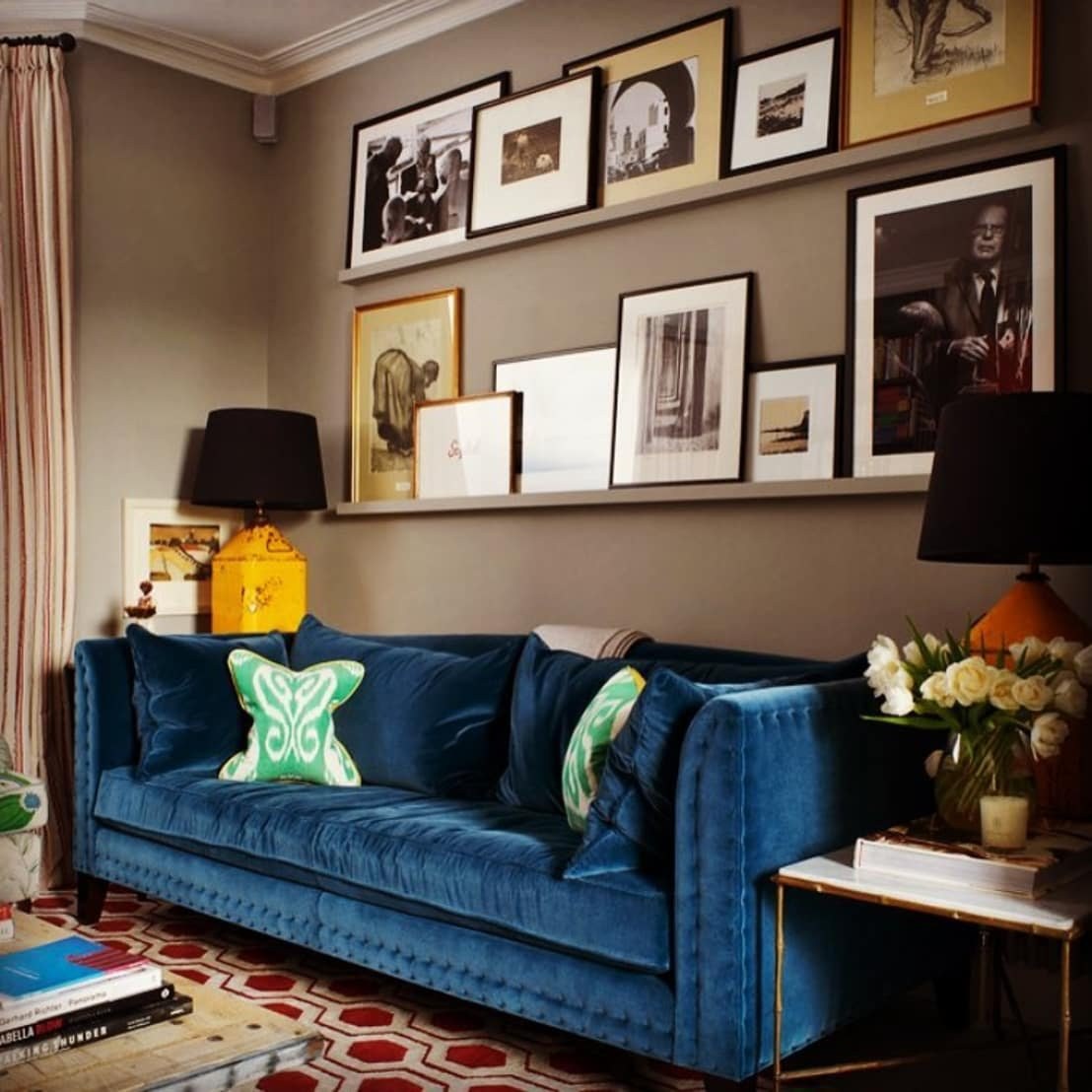 Гостиная с синим диваном