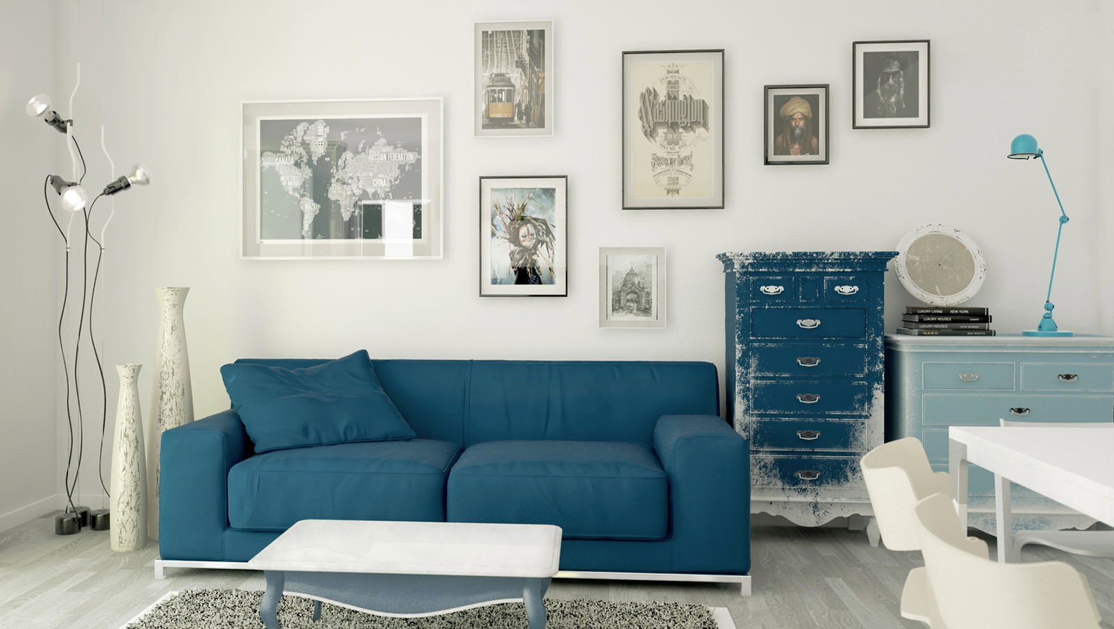 Голубой диван в интерьере