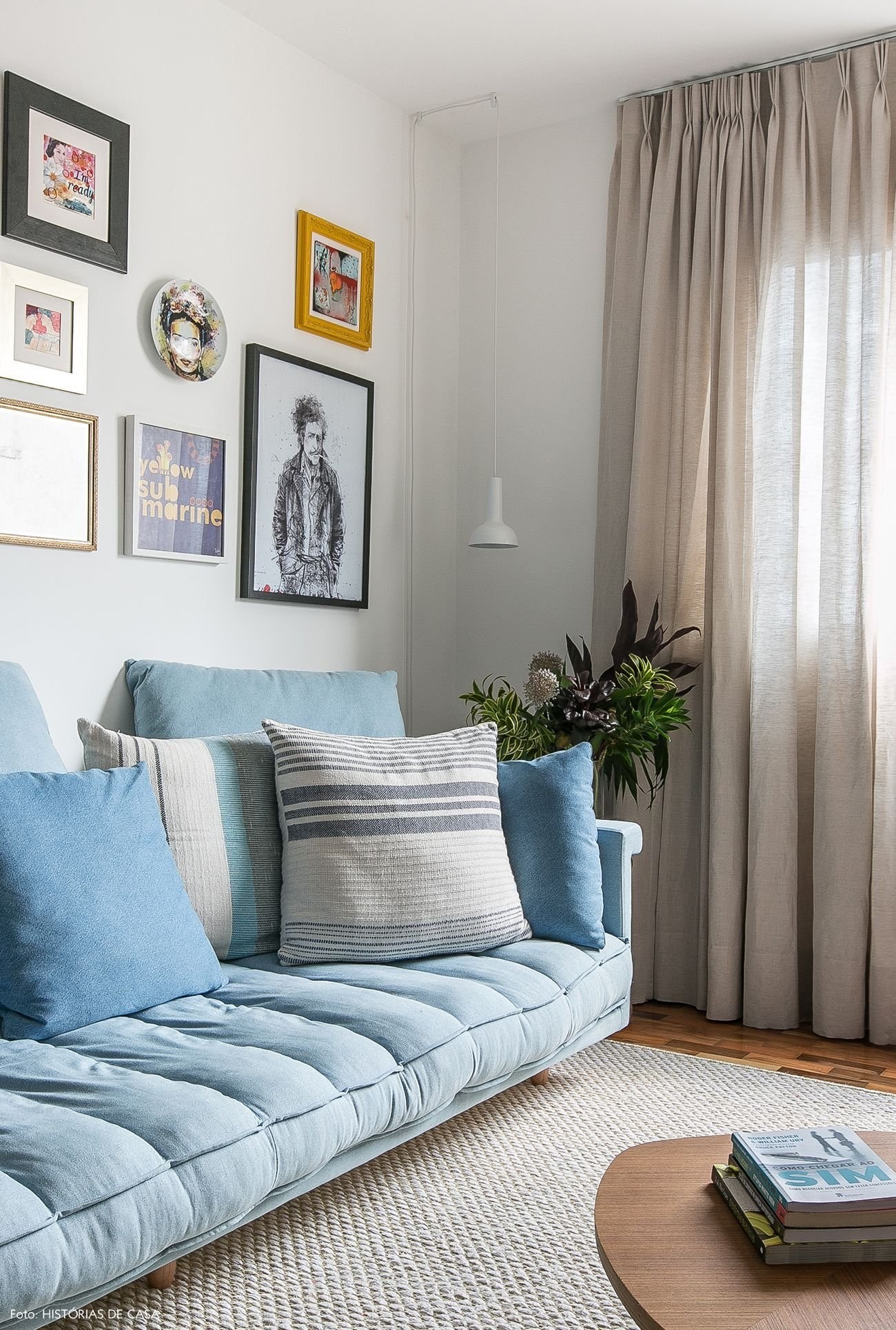 Голубой диван в гостиной