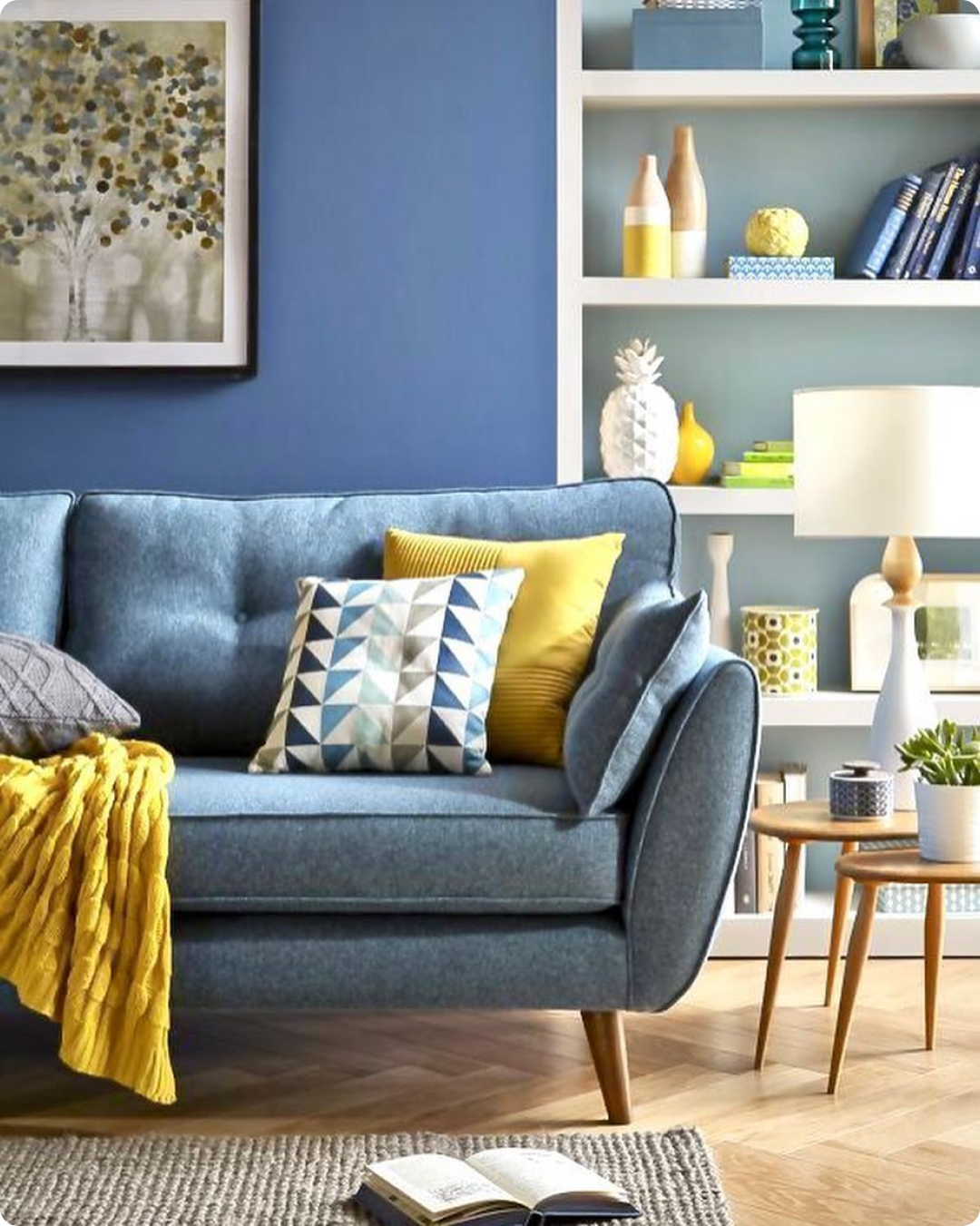 Интерьер с синей мебелью