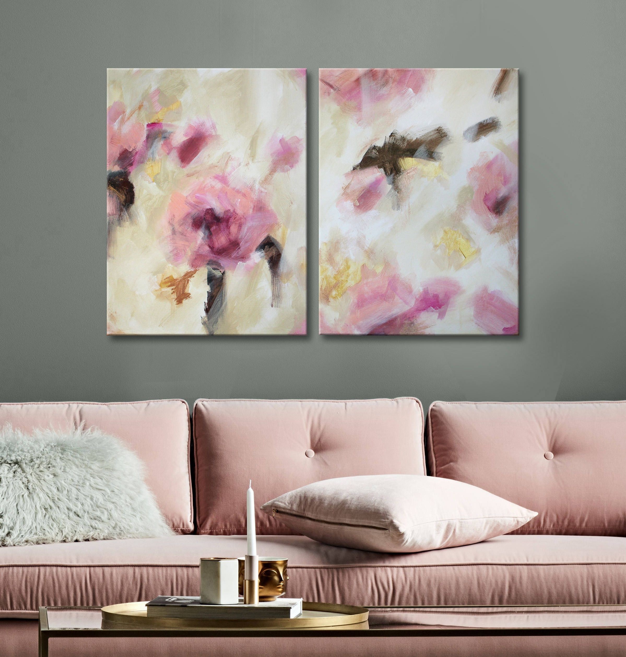 Розовая картина в интерьере