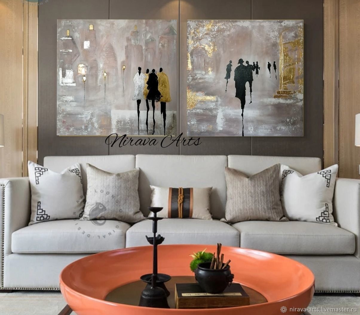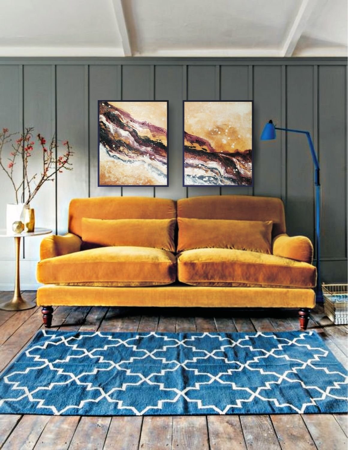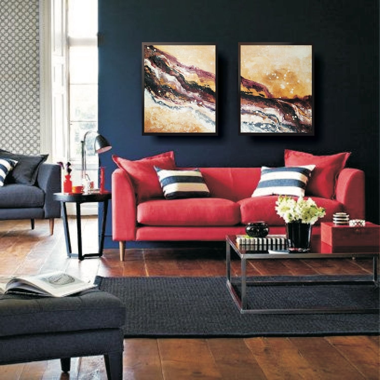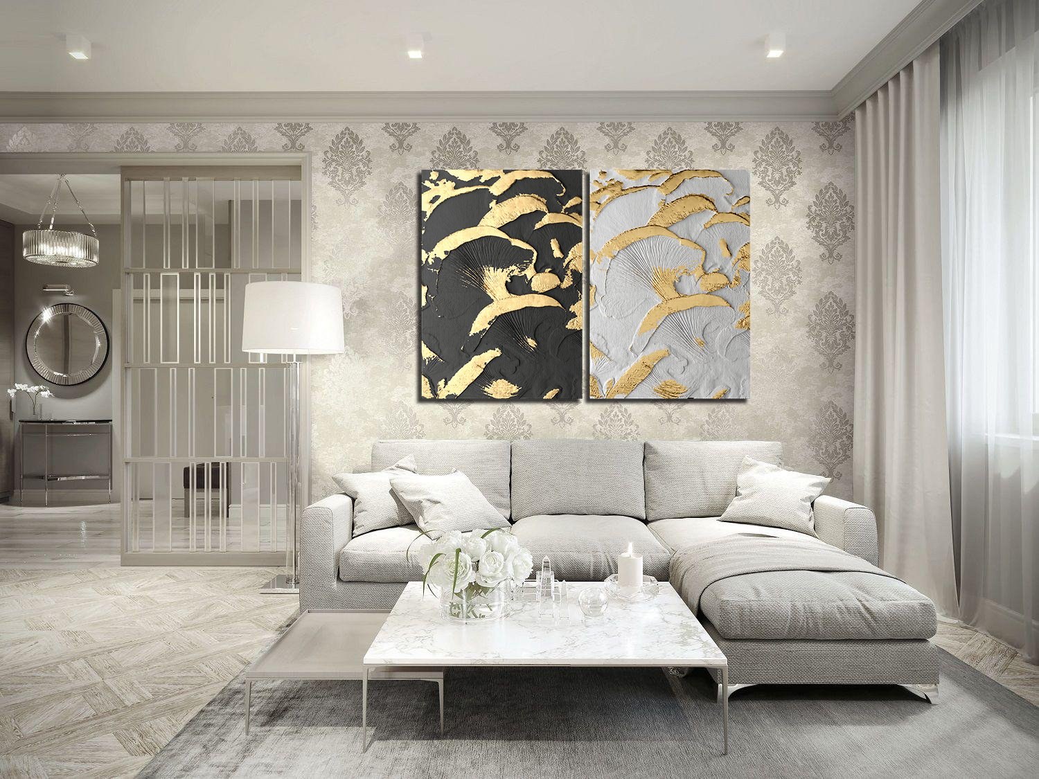 Диптих в интерьере гостиной