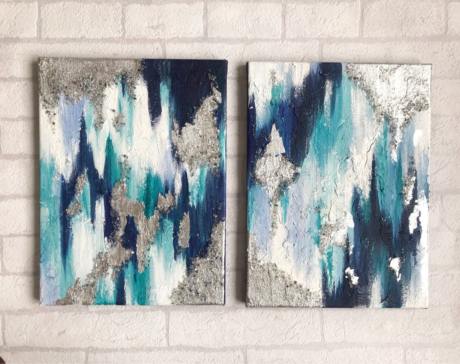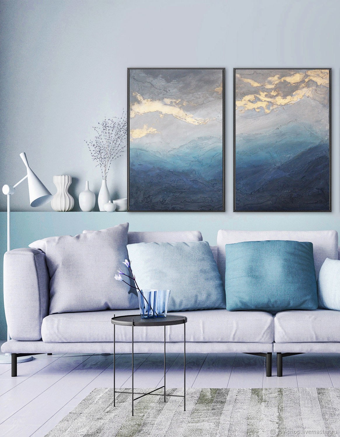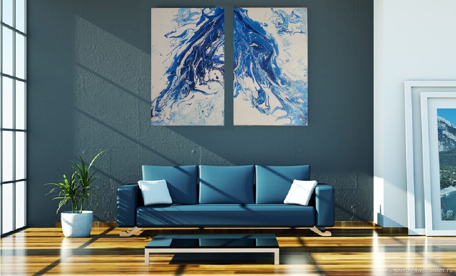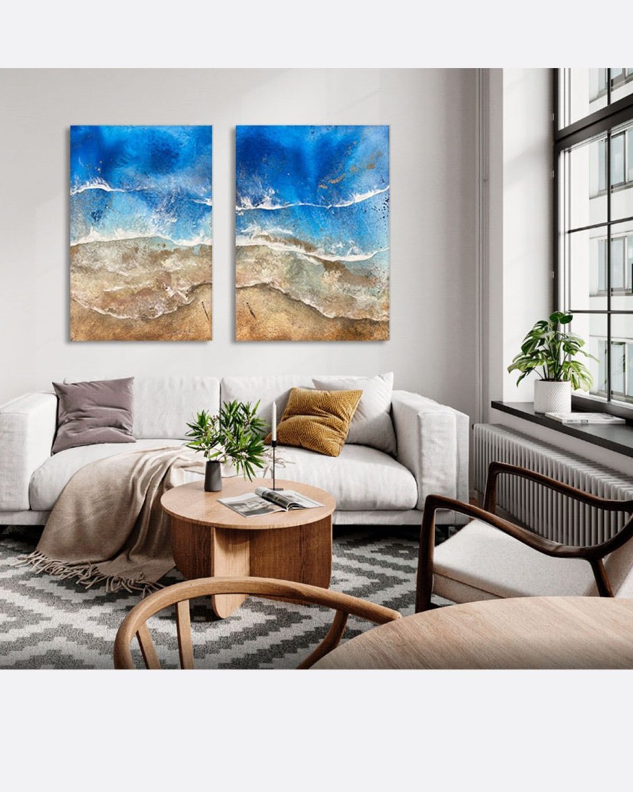 Интерьерные картины диптих синий и бежевый серый