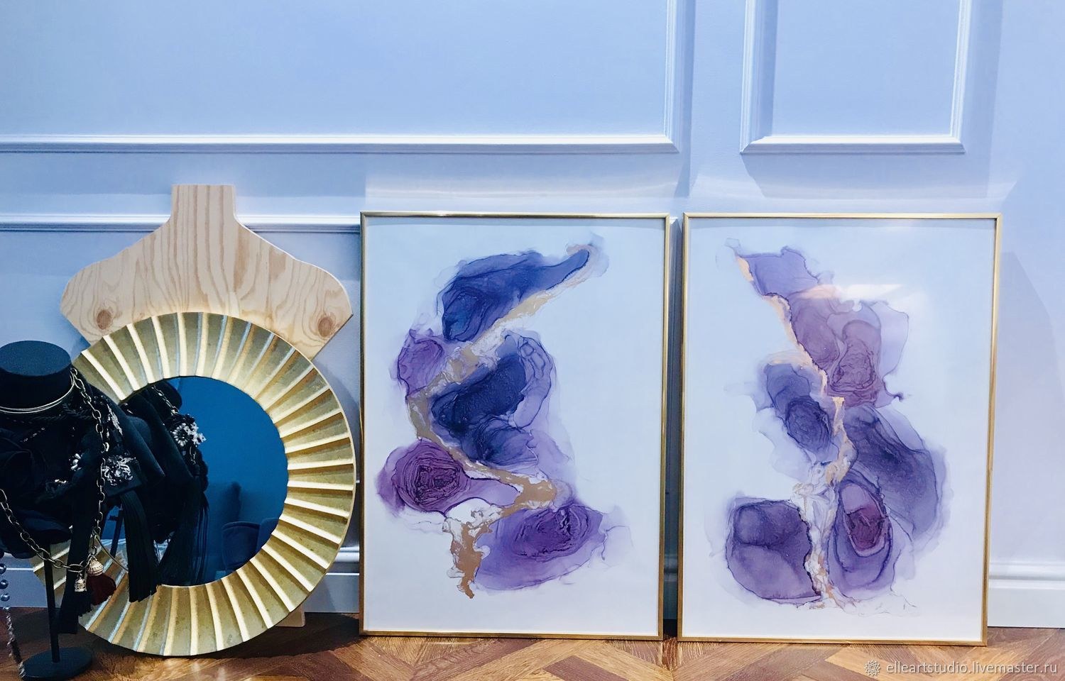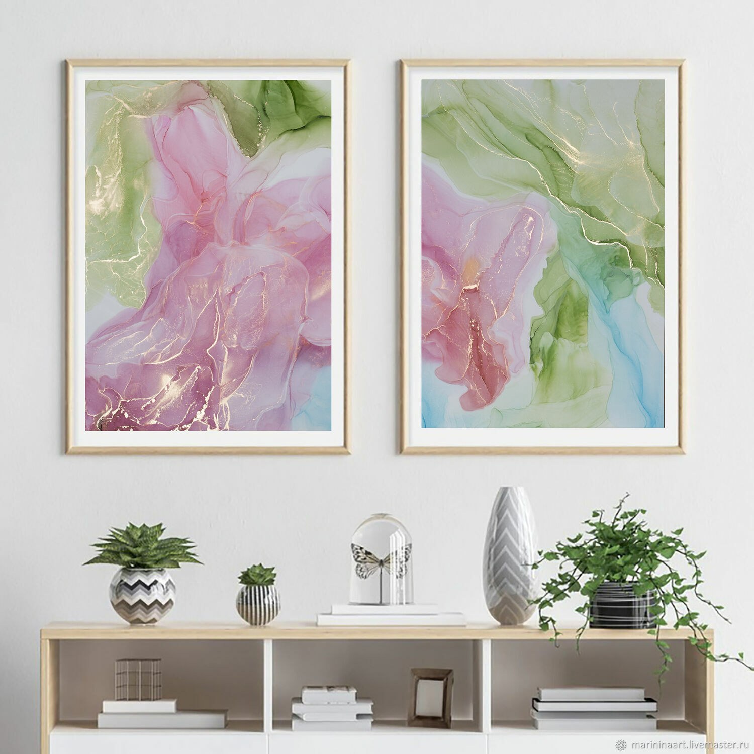 Алкогольные чернила картины в интерьере