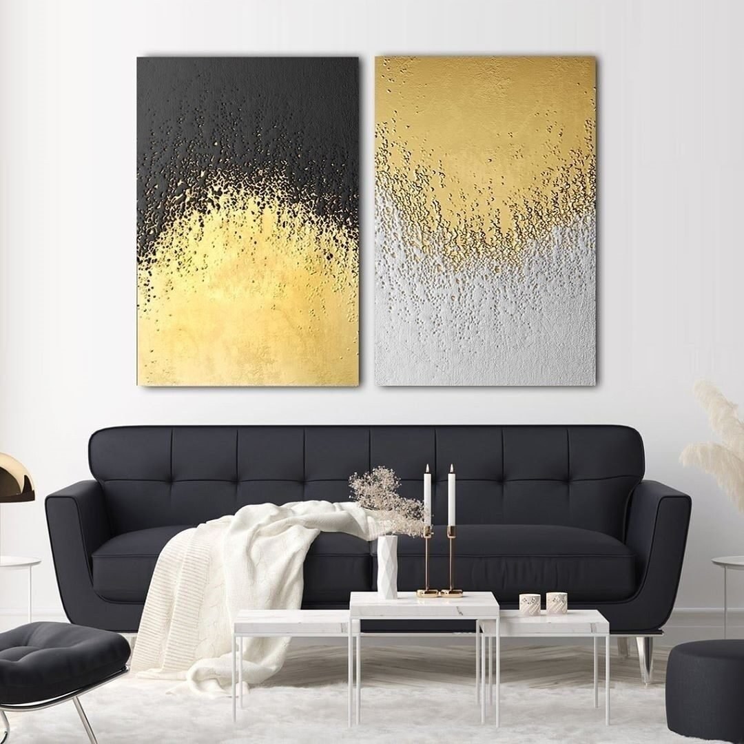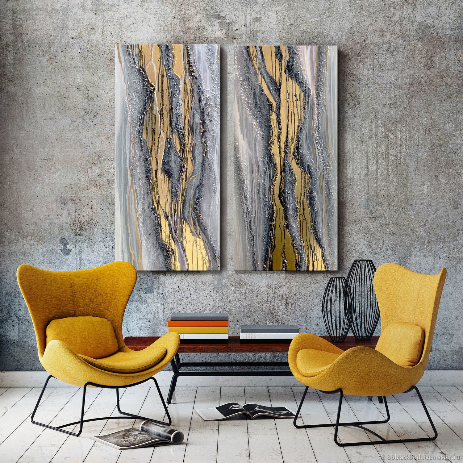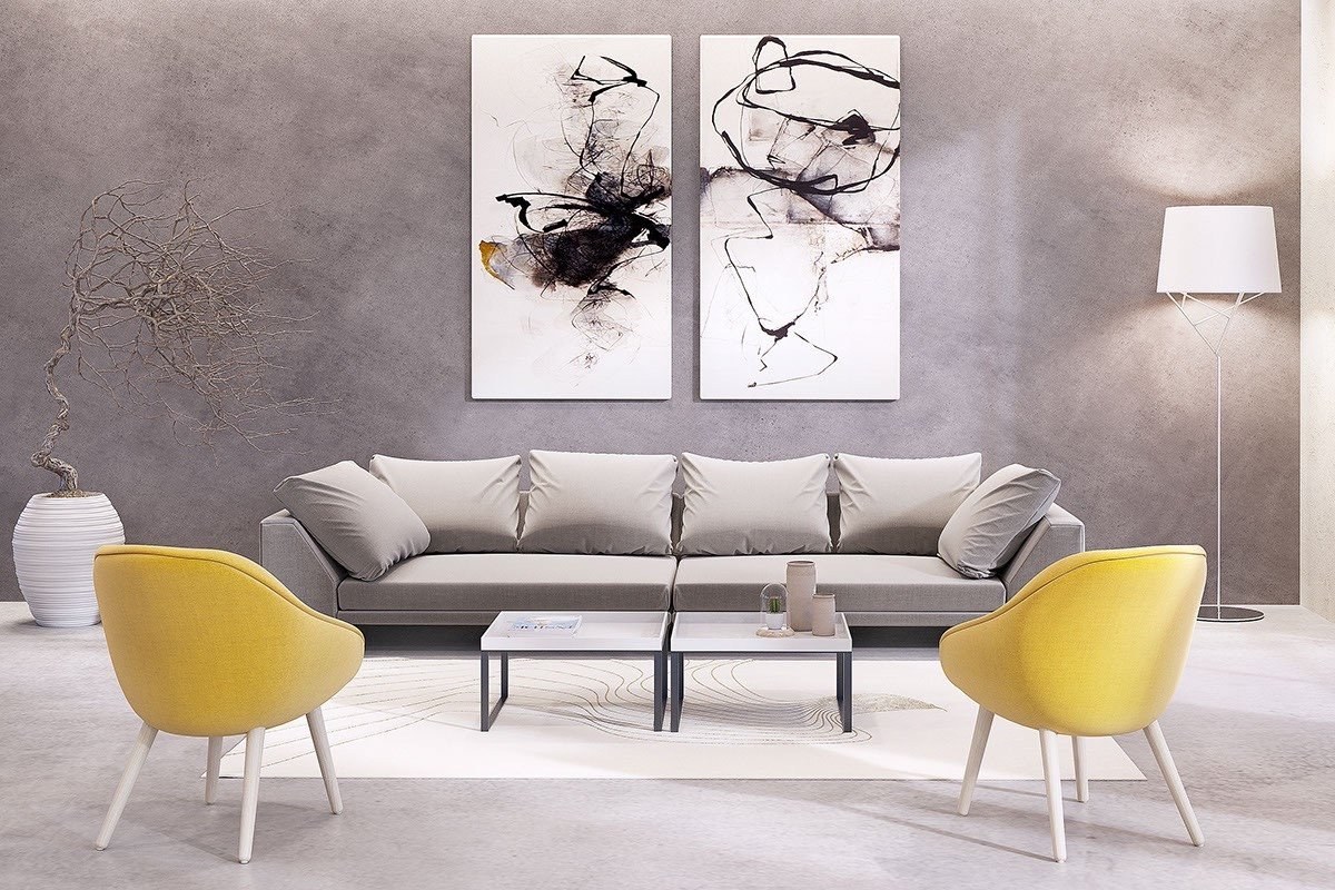Картина в интерьер желтый черный серый диптих