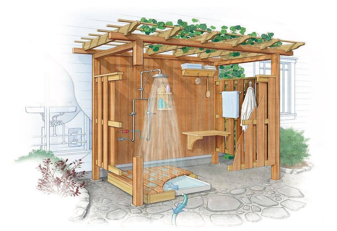 Постройка летнего душа на даче