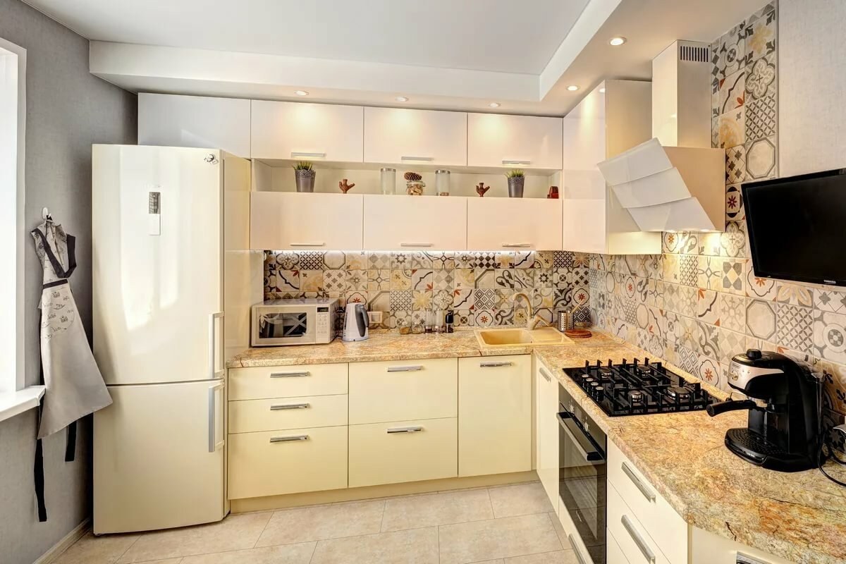 Угловые кухни бежевого цвета
