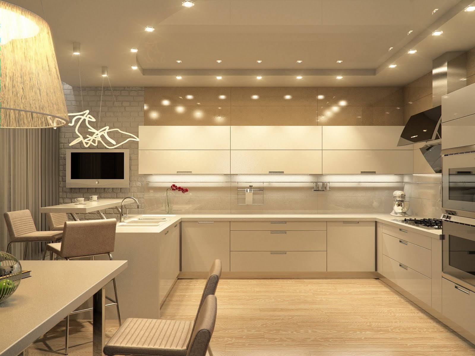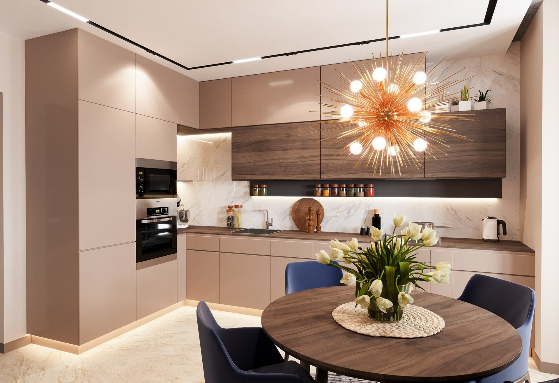 Современная кухня в бежевых тонах