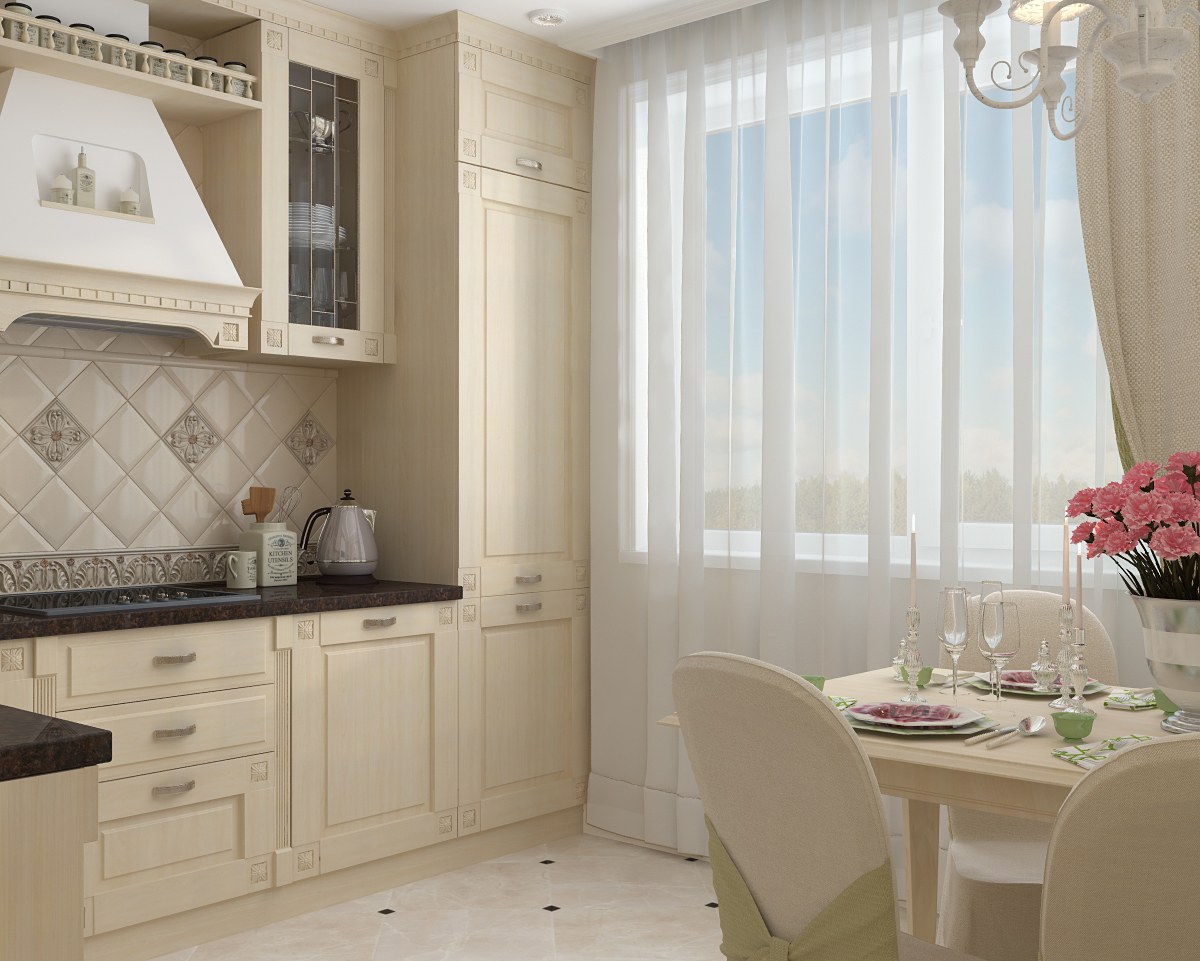 Кухня в кремовых тонах