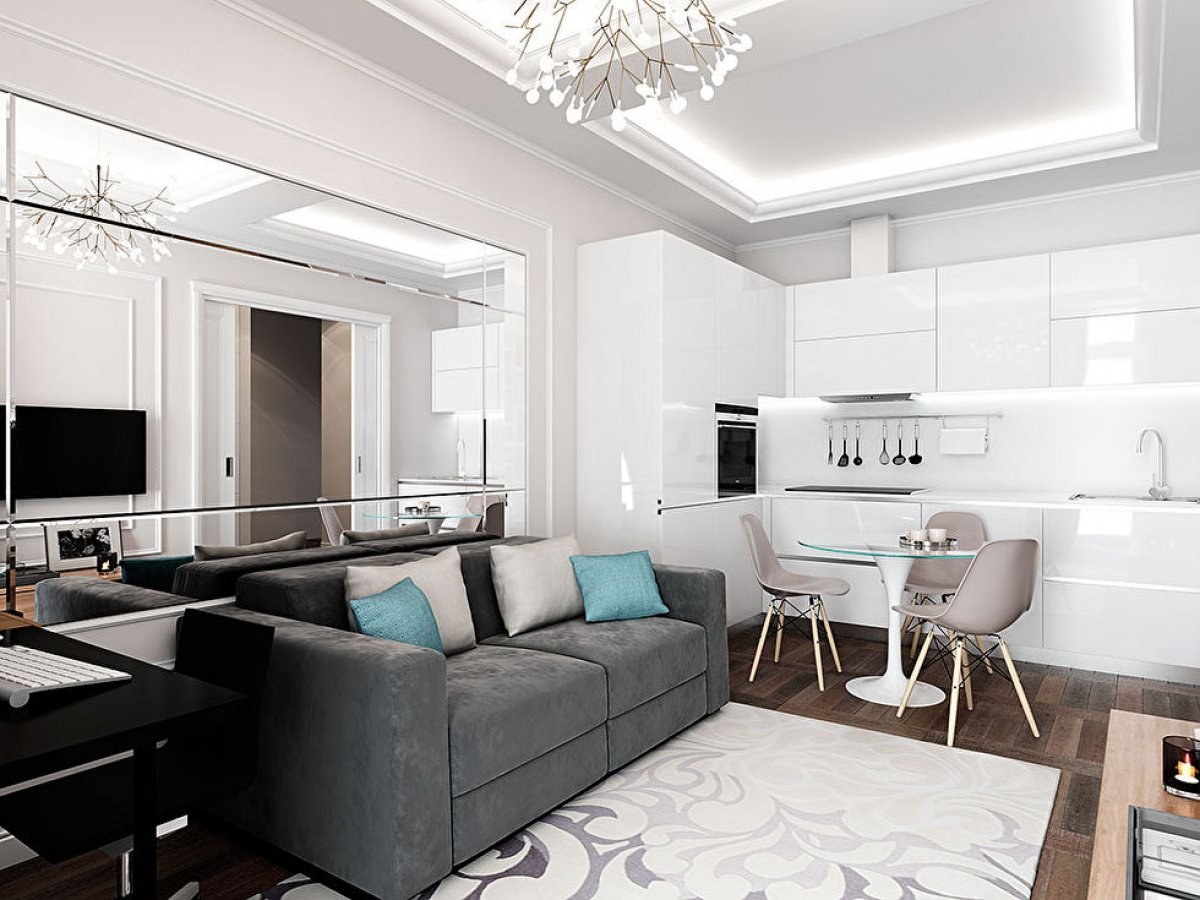 Кухня с гостинной 30кв м интерьер квартира
