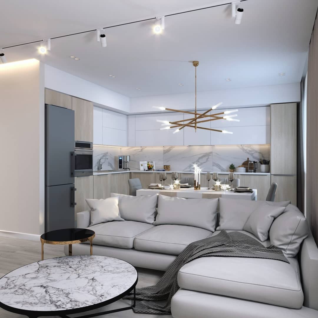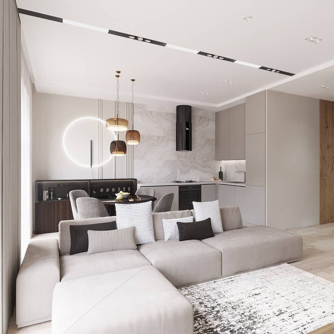 Интерьер кухня гостиная 19м2